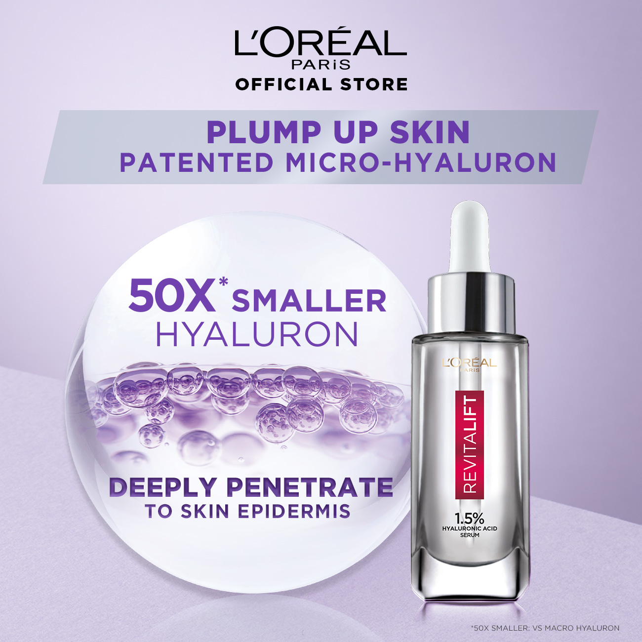 [Bundle of 2] L'Oreal Paris Revitalift 1.5% Hyaluronic Acid Plumping & Hydrating Serum 30ml & Crystal Micro-Essence Water 130ml (Oil Control)