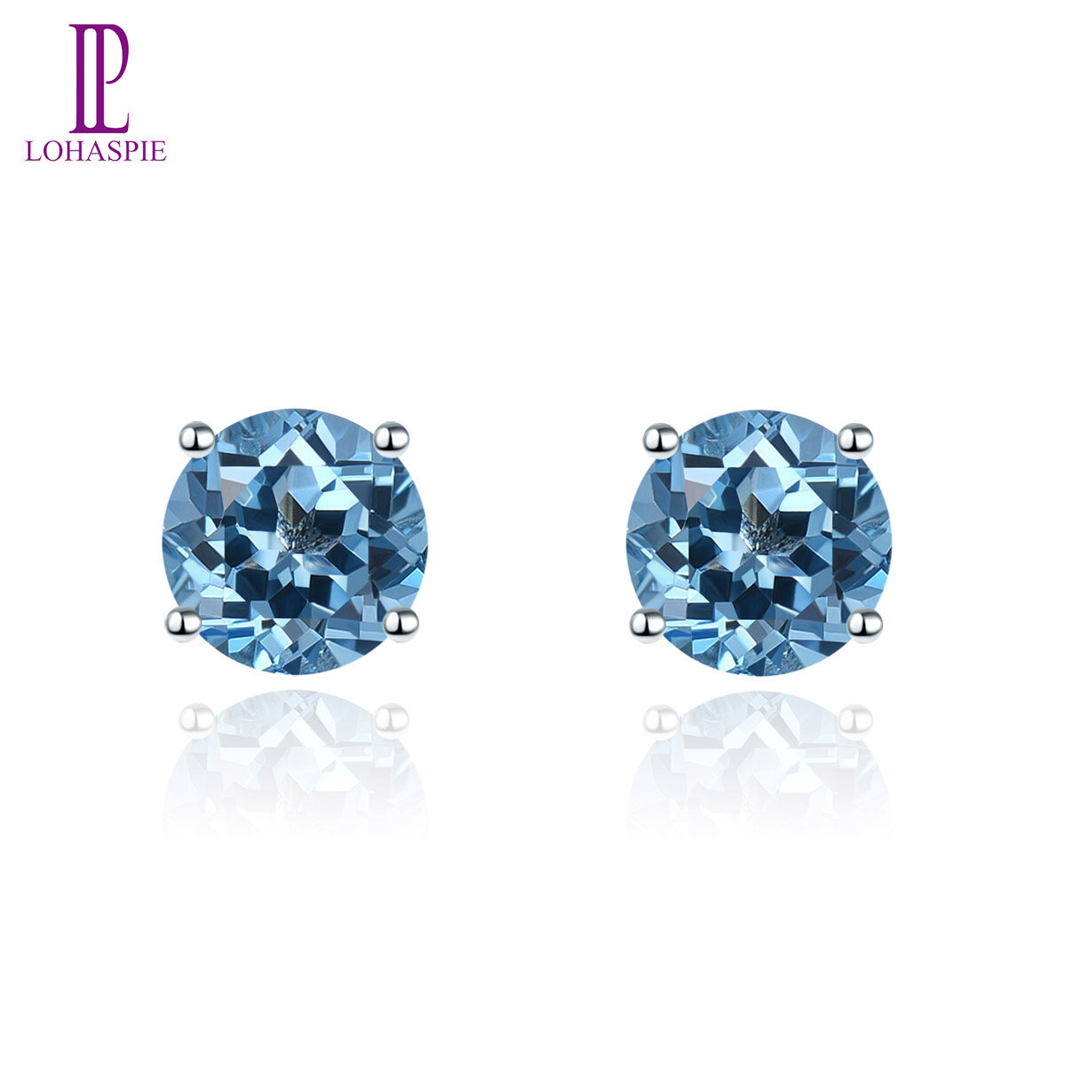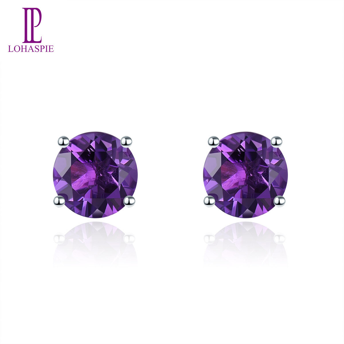 Round Stud Earrings for Women Gift Natural Amethyst Garnet Solid 925 Sterling Silver