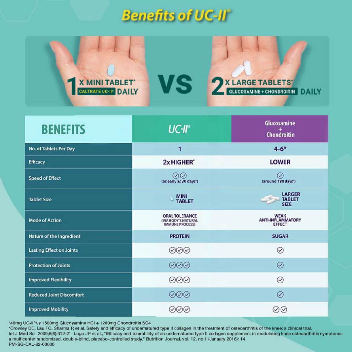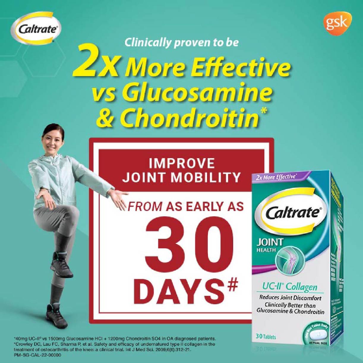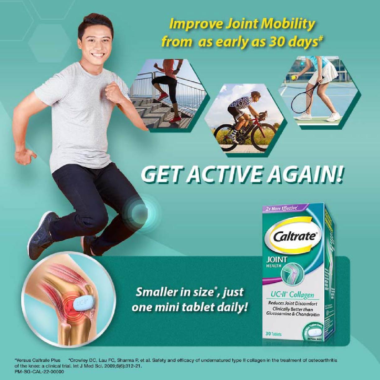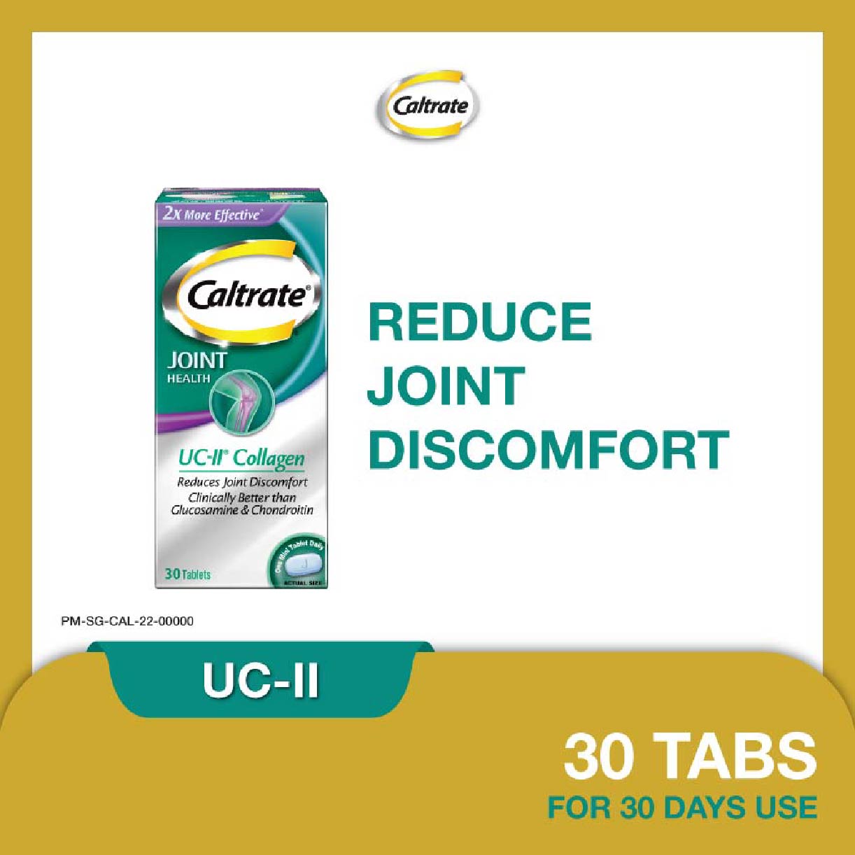 Support your joint health with the Caltrate Joint Health Undenatured Collagen Type II (UC-II). Caltrate Joint Health UC-II contains UC-II undenatured collagen type II, a patented ingredient that has been clinically tested to reduce joint discomfort such as stiffness and promote healthy cartilage and joint flexibility for healthier and longer active living.