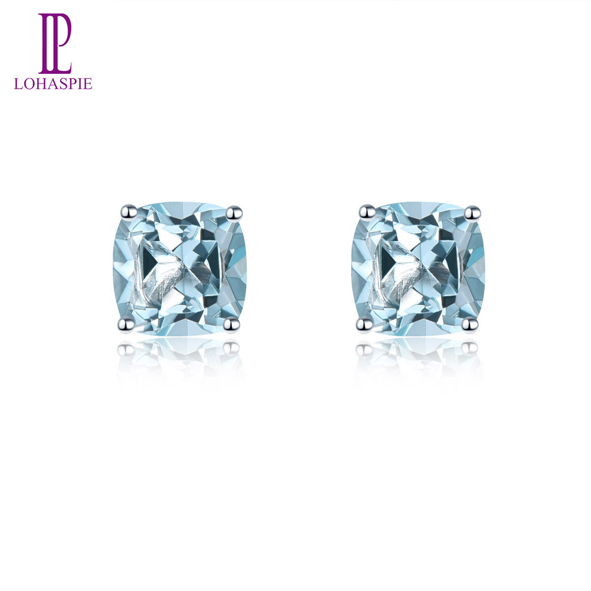 Real Silver 925 Stud Earrings for Women Natural Blue Topaz