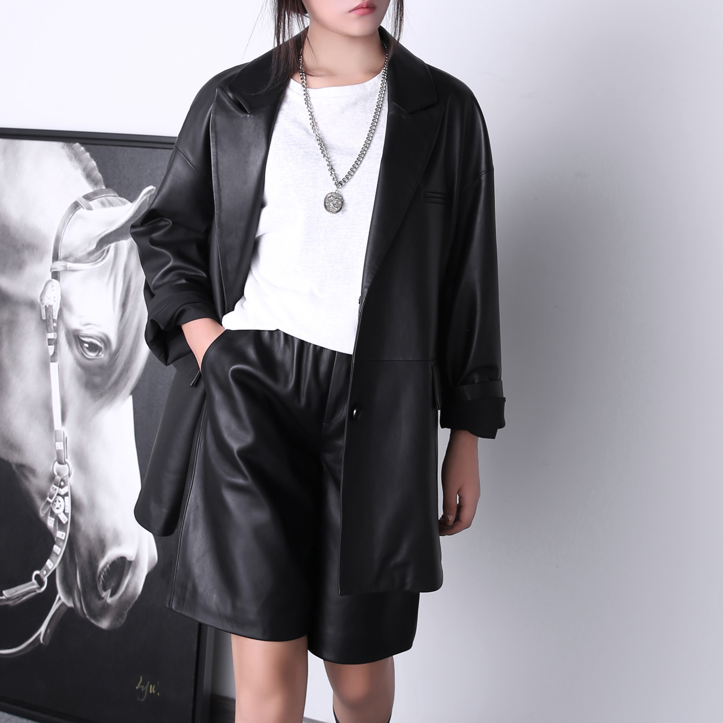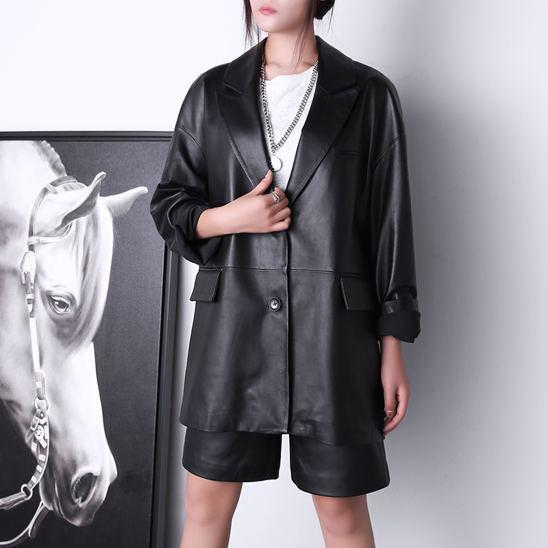Fashion classic Oversize long sheepskin genuine leather jacket for men and women