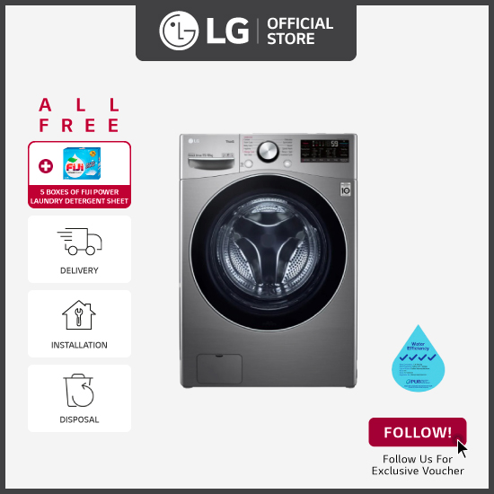 [Bulky] LG F2515RTGV AI Direct Drive and TurboWash Technology Front Load Combo, 15kg Washer + 8kg Dryer + Free 5 Boxes of Fiji detergent sheets + Free Delivery + Free Installation + Free Disposal