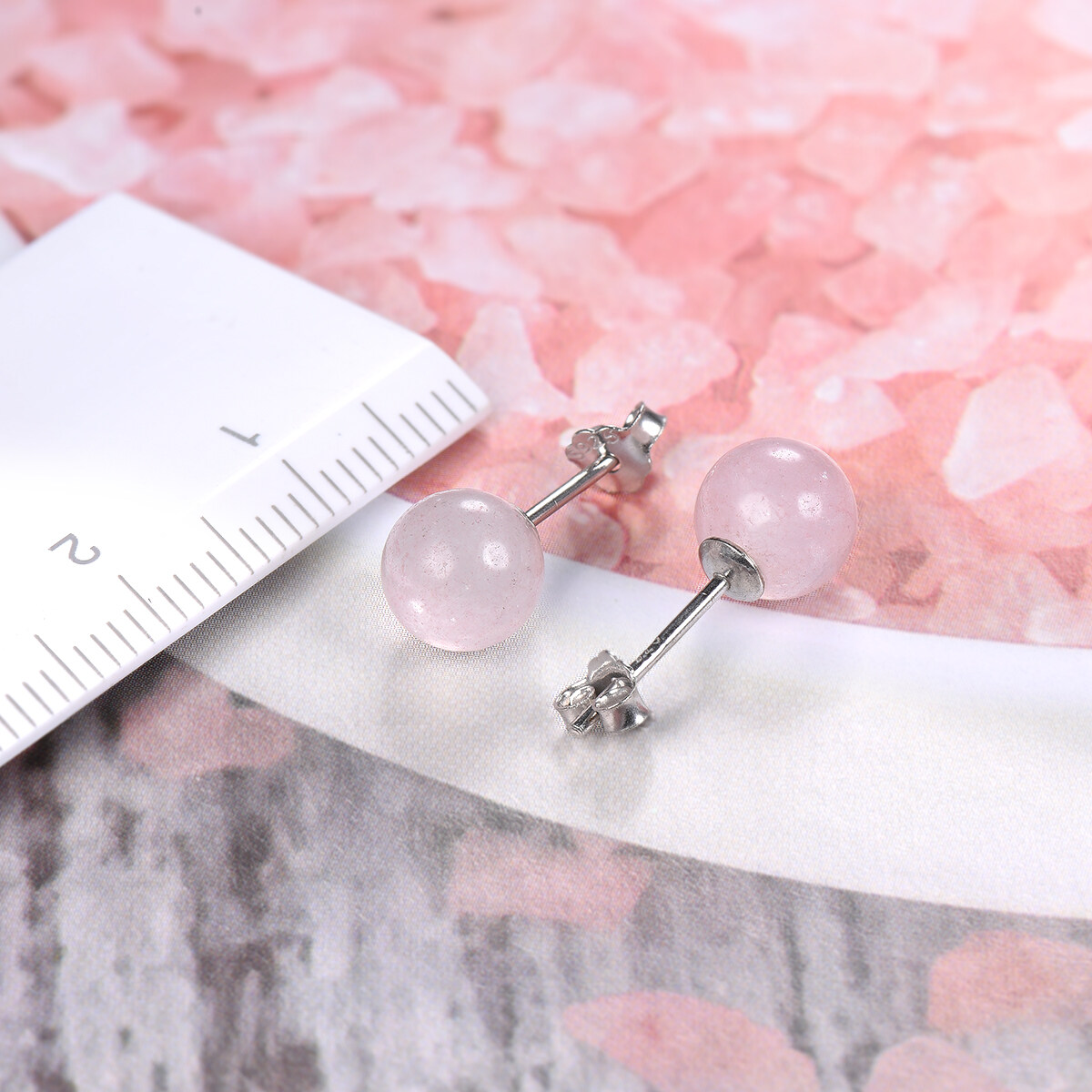 Rose Quartz Stud Earrings Solid 925 Sterling Gemstone