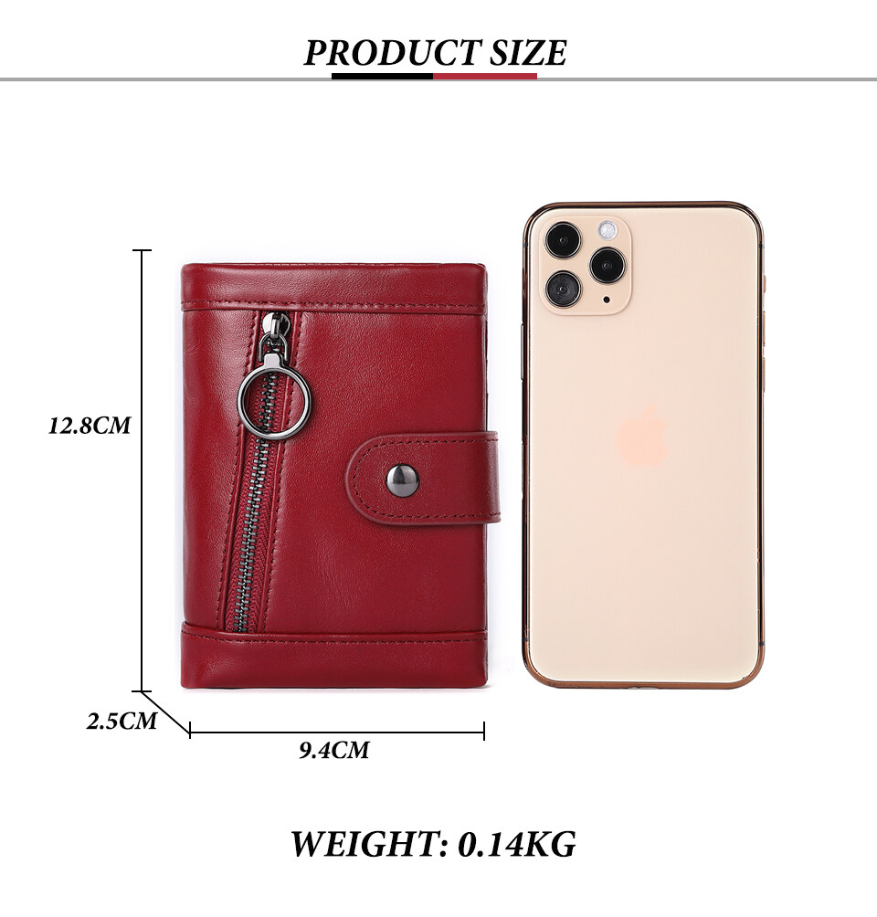 Royal Bagger 2021 New Fashion Short Wallet Purse For Women Genuine Cow Leather Elegant Clutch Bag Multi-Card Position Coin Bag Key Bag
