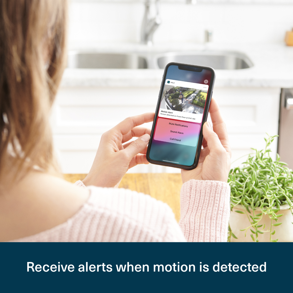 • Smarter alerts, quicker action - Receive notifications for people, vehicles, and packages so you can take quick action such as sound the siren, call a friend or dial emergency services, with the included, Arlo Smart trial