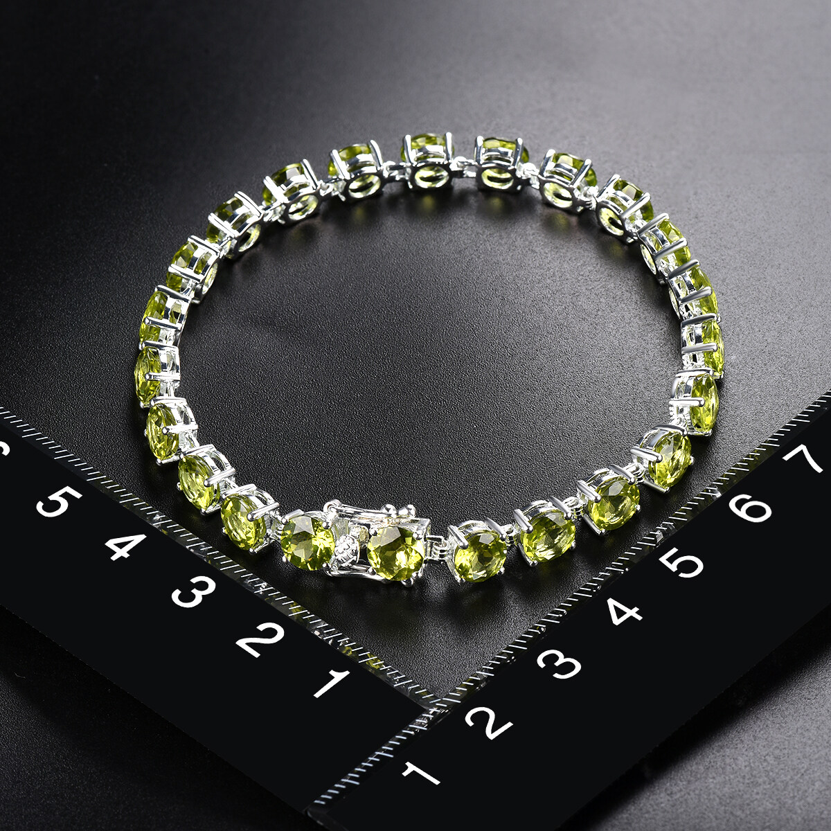 Natural Peridot 21.41Ct Gemstone Solid 925 Sterling Silver Chain Bracelet 7.25 Inch for Women Round 6mm Gemstone Fine Jewelry
