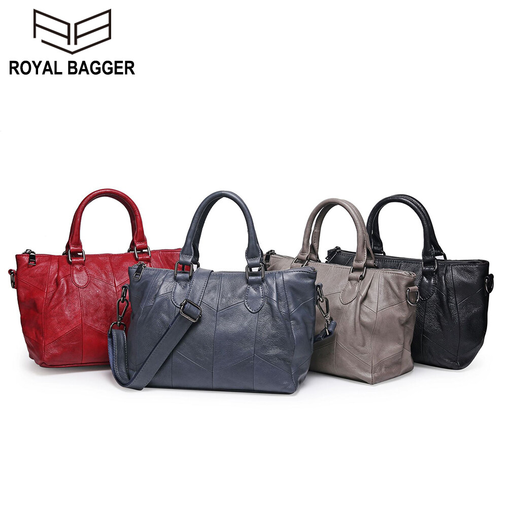 Royal Bagger New For Women Soft Genuine Cow Leather Top-Handbag Retro Casual Shoulder Bag Ladies Elegant Handle Bag