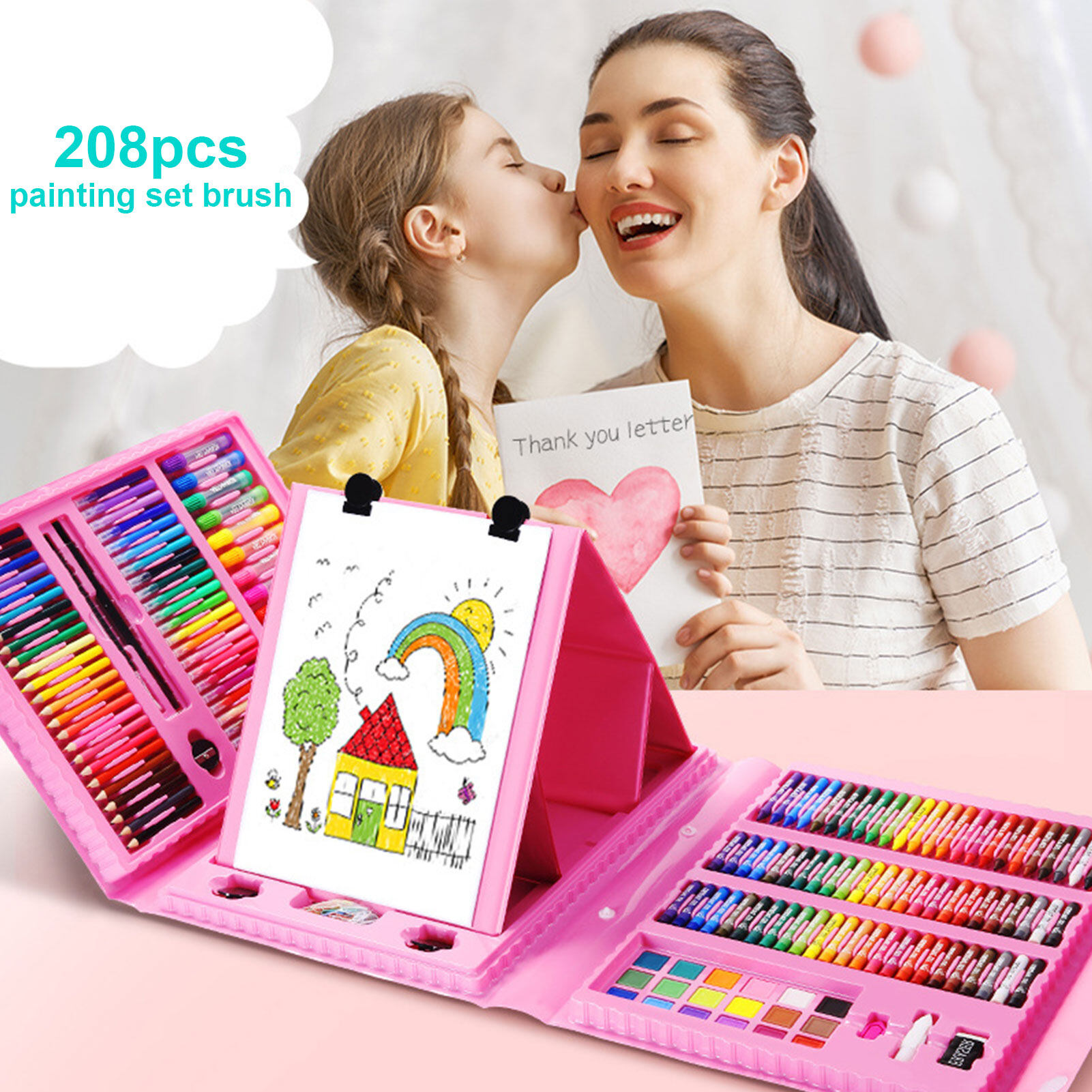 208 PCS Kids Painting Coloring Set Draw Set Colored Pencil Crayon Watercolor Pens With Drawing Board Drawing Set Toy School Supplies Kid Gifts