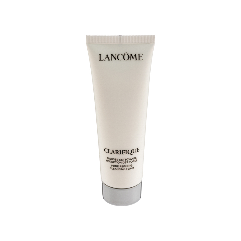 Lancome Clarifique Pore Refining Cleansing Foam Silky and velvety, this face wash cleanses face gently to remove dirt and old dull skin cells, while polishing and nourishing skin for a translucent, dewy and smooth complexion.Product Features:•Thorough cleansing: it helps to remove dirt, impurities, old dull skin cells and excess oil from pores to leave skin cleansed and smooth.•Skin polishing: formulated with French Beech Bud Extract and Salicylic Acid, this face wash helps to tighten pores and polish skin surface for a smooth complexion.•Gentle formula: the creamy texture forms dense lather to gently carry away impurities and nourish skin with amino acid. It is mild and suitable for sensitive skin.Ingredients:•French Beech Bud Extract, Salicylic Acid: purifying and polishing skin surface •Amino Acid: nourishing