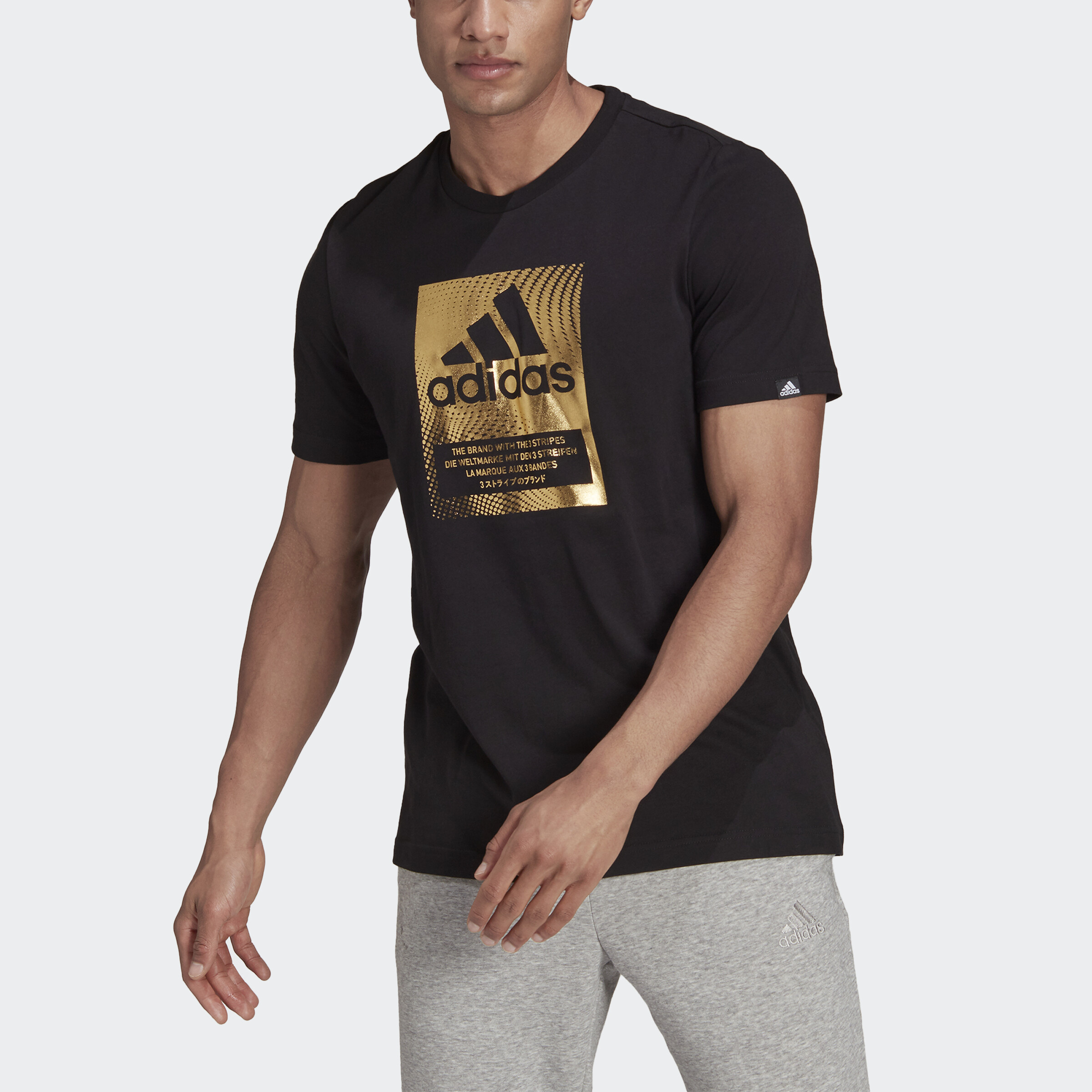 Turn heads everywhere you go. This adidas graphic tee features a maximalist take on the iconic box logo in an eye-catching foil print. It has everything you need from an everyday t-shirt in its comfortable regular fit and soft cotton jersey fabric. By buying cotton products from us, you're supporting more sustainable cotton farming.