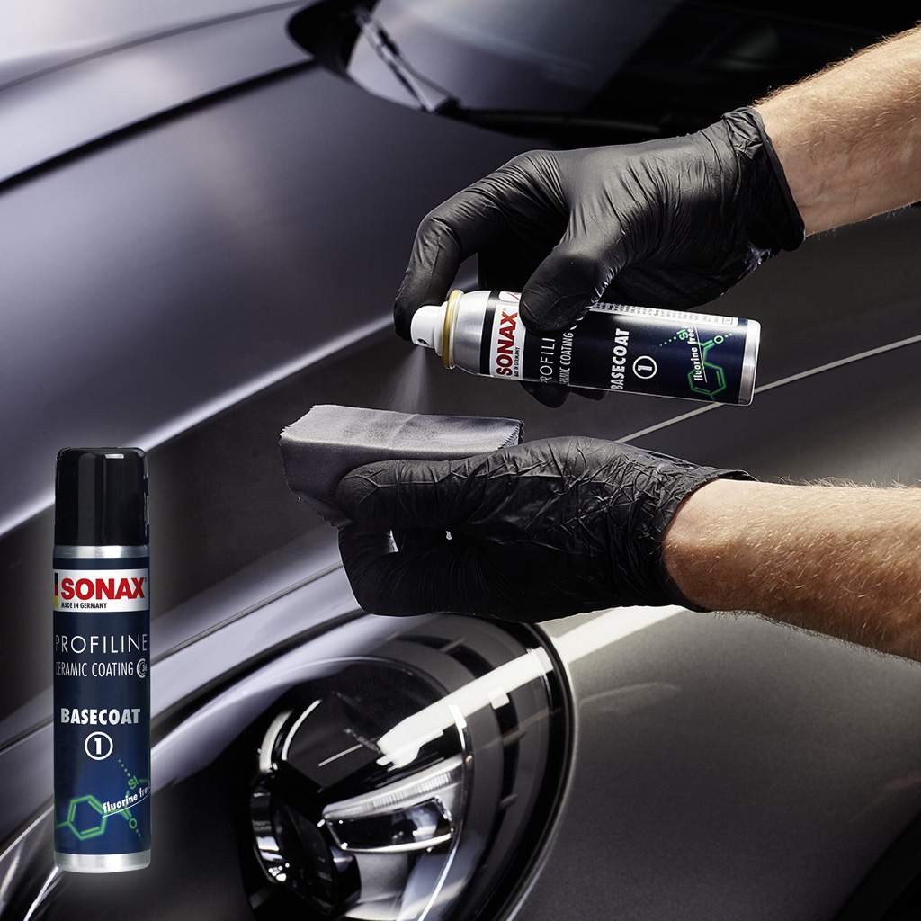 SONAX Pro Tips:Do not apply SONAX CC36 Ceramic Coating onto hot surfaces.To ensure a perfectly smooth and even application, working in a well-lit garage is recommended.Within an hour of applying SONAX BaseCoat, missed areas or streaks can be dissolved and removed by applying the product again. The sealed vehicle should not be washed within the first three days after being treated, and when it is washed, do not use a high alkaline cleaner. Do not polish the vehicle after treatment.