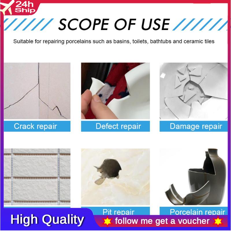 The repair paste is in snow white color, it is great for repairing the bathroom or kitchen sink, bath tub or ceramic floor with no marks. The paste is made of non-toxic material that is safe to use in indoor area. It restores the beauty of your ceramic item like brand new. Lets get it now!