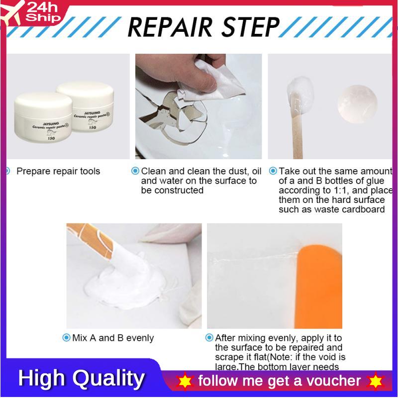 Easy To Use: The ceramic paste is easy to apply to any ceramic items. In just simple 3 steps: spread , let dry and polish, you can repair the item in just a few mintues.