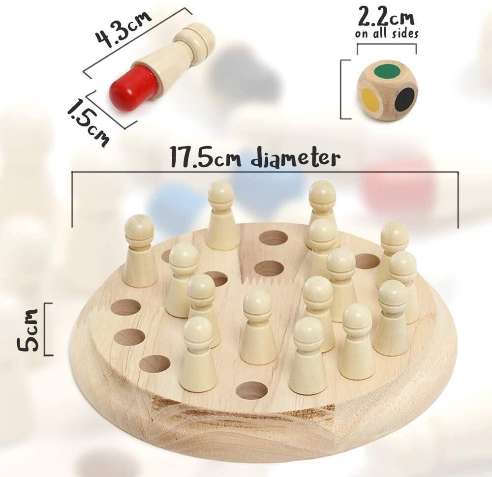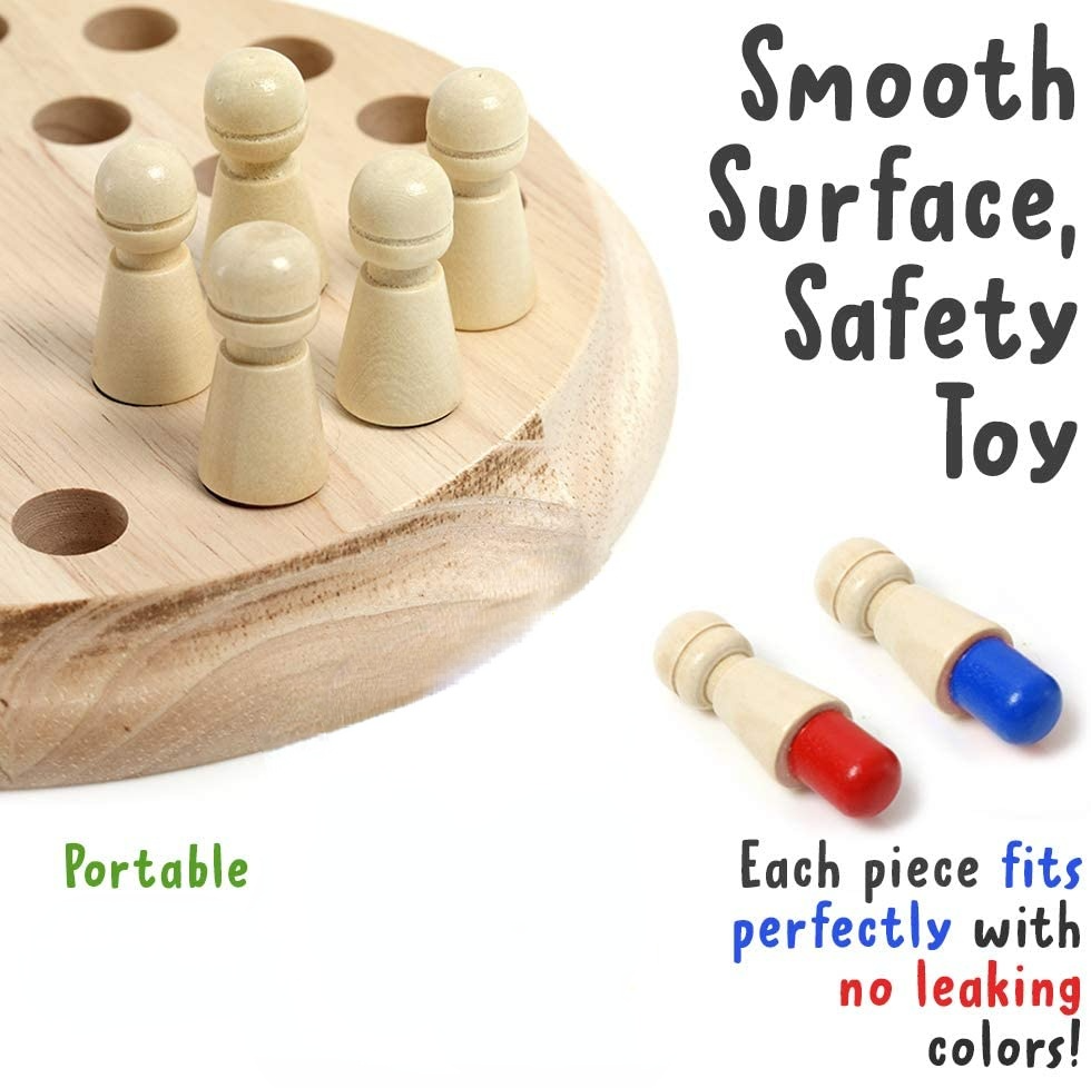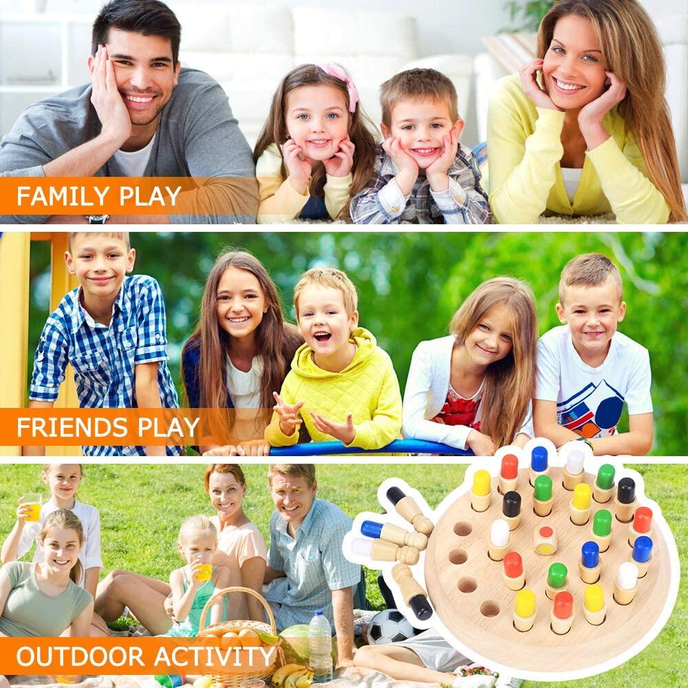 The wooden memory board game for kids is fun. It can be played by 2-6 players, kids can play with family or friends. it can be brought anywhere you like, making it ideal for a Fun travel Board Game for Trips, Camping, Hiking, family parties, and other Outdoor events. This memory and matching game helps with cognitive development, hand-eye coordination, and problem-solving skills. Great learning and playing 2 in1 toys for kids!