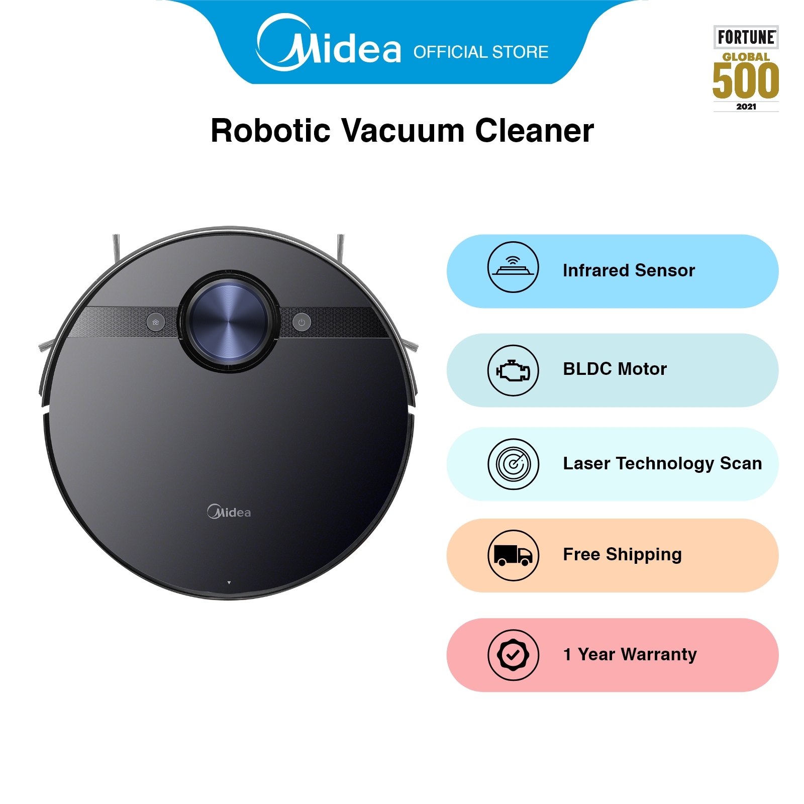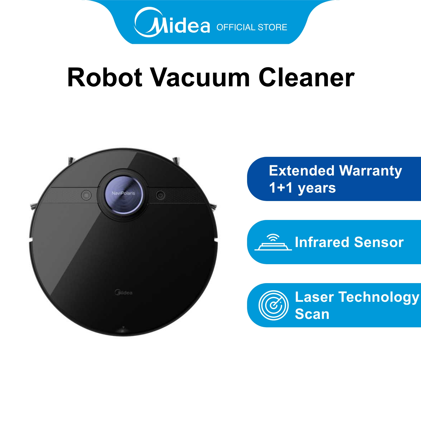 Midea M7 Black Robotic Vacuum Cleaner, 14.4V