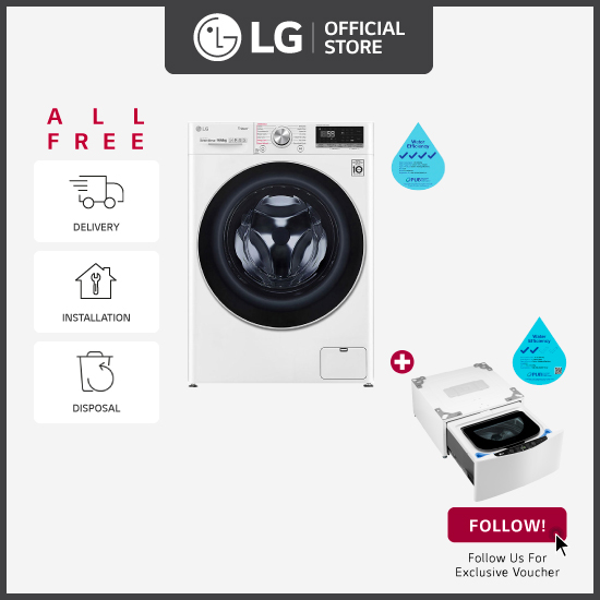 [Bulky] LG FV1409S3W 9KG AI Direct Drive Front Load Washing Machine + LG Top Load Mini Washer TV2425NTWW 2.5kg Blue White + Free Delivery + Free Installation + Free Disposal