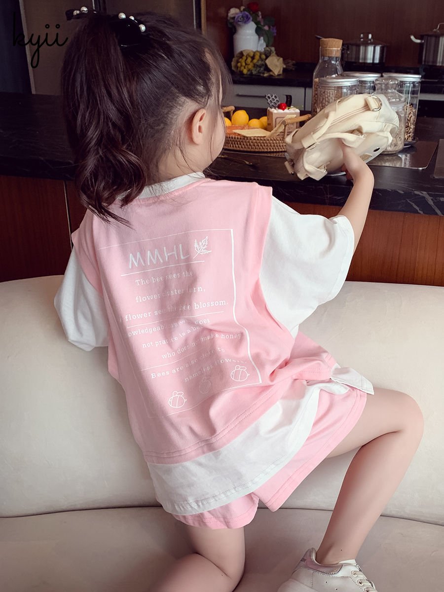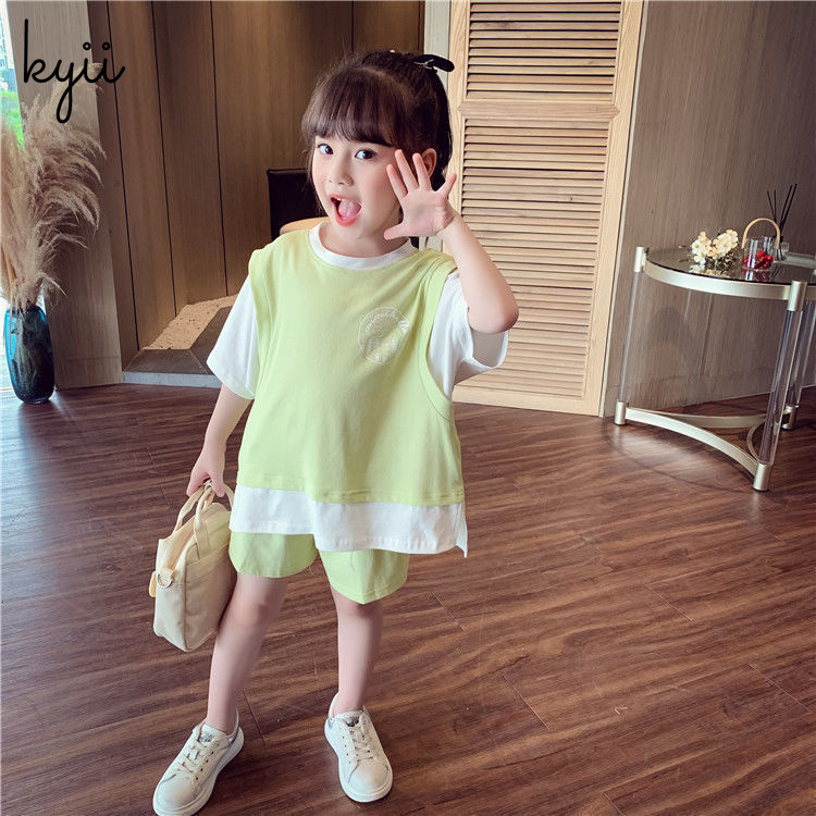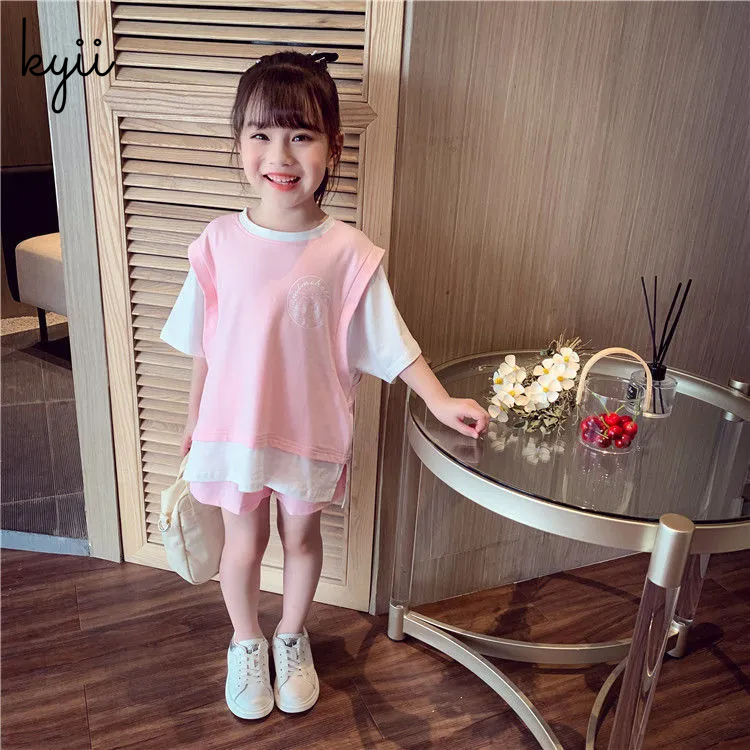 KYII Girls summer suit Children summer two piece Set ky22096