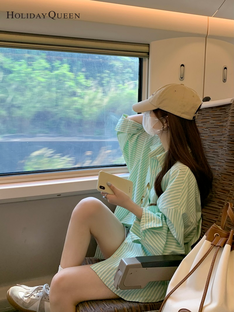 HolidayQueen 2022 Summer Women's POLO Collar Striped Shirt New Korean Design Mid-Length Thin Sunscreen Shirt Sunscreen Cardigan M L XL Free Shipping HQ1301
