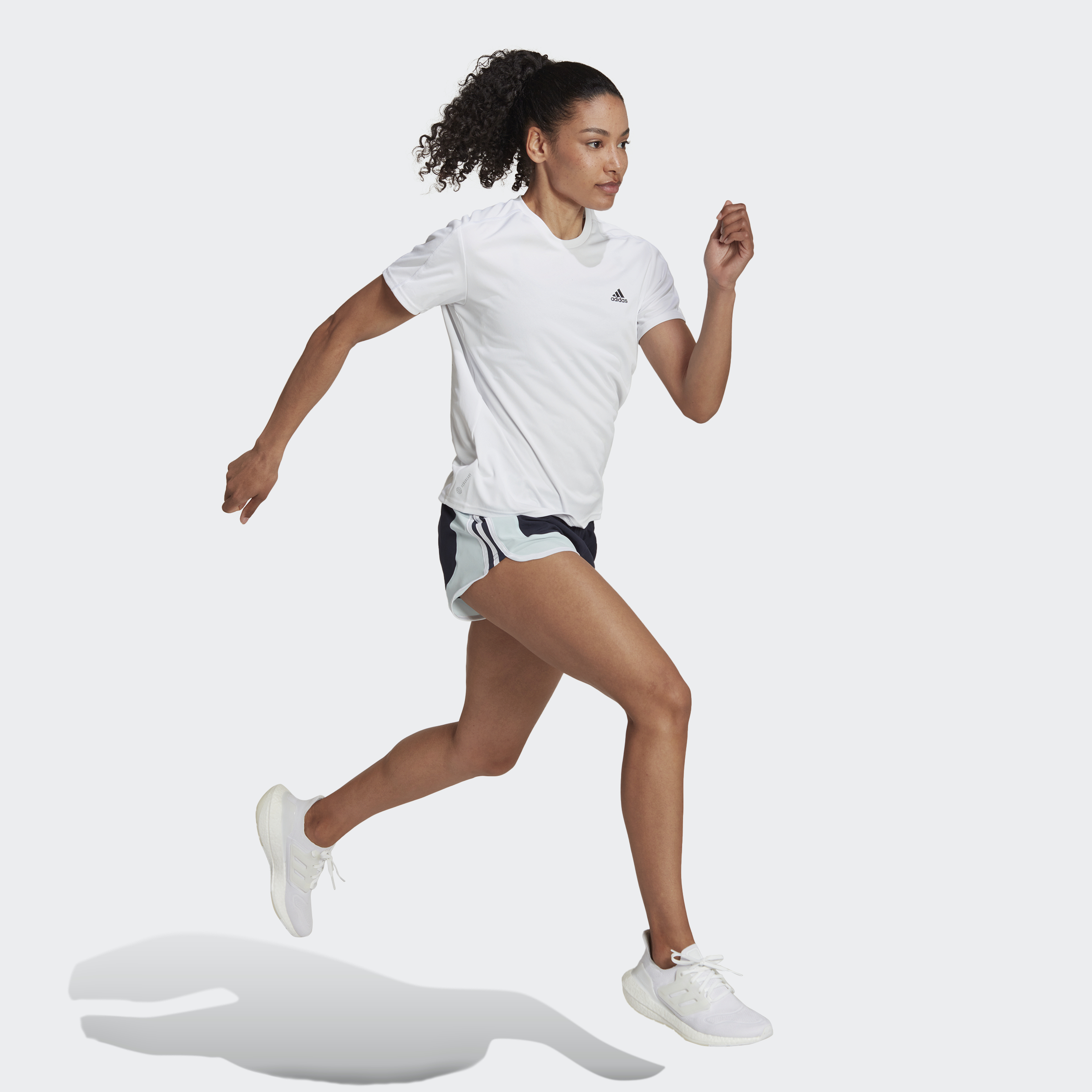 There's nothing quite like the feeling of freedom running gives you. Eliminate distractions and enjoy the journey in this minimalist adidas tee. Moisture-absorbing AEROREADY lets you go the distance while feeling dry and comfortable. All-around reflectivity shines when the light fades. Made with 100% recycled materials, this product represents just one of our solutions to help end plastic waste.