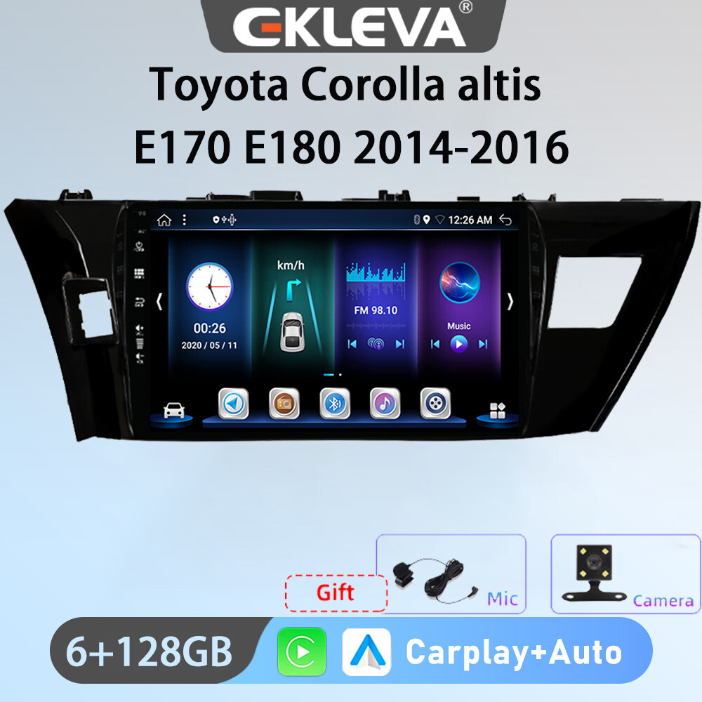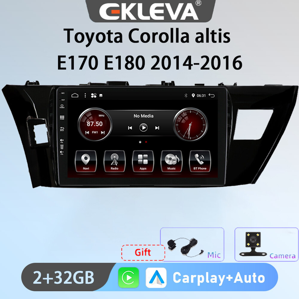 EKLEVA 2 din Android Auto Radio for Toyota Corolla altis E170 E180 2014-2016 Carplay Car Multimedia 2din Autoradio Head Unit 2din GPS 4G Free Gift Rear Camera and Microphone
