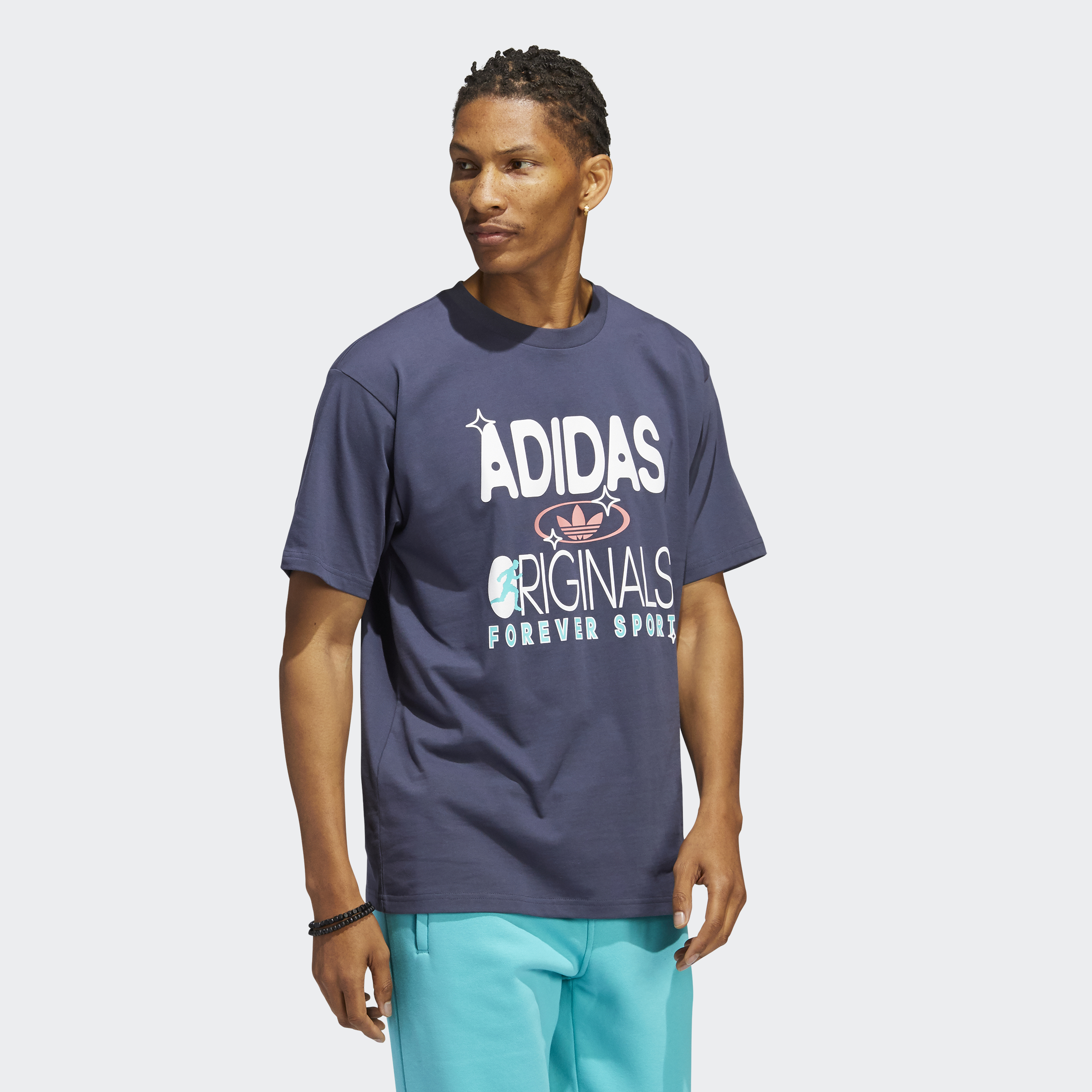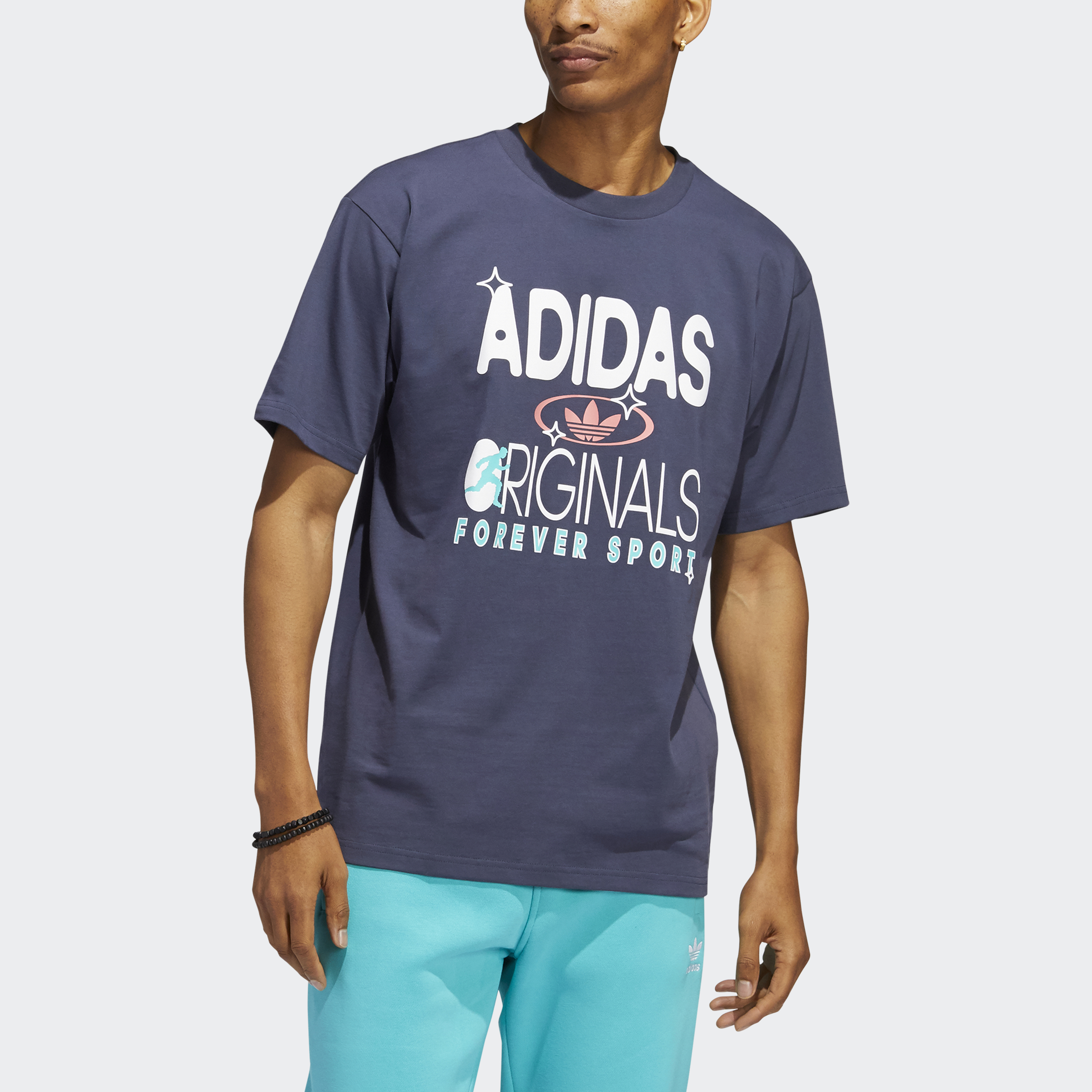 The legacy of adidas is an ever-evolving story. But no matter how it grows, no matter the direction, the root stays firmly planted in sport. Which is made clear here on this t-shirt, because it straight up says it. A colourful graphic runner in the "O" really drives the idea home. Soft cotton makes this an easy go-to. No thought or effort required. Just comfort.