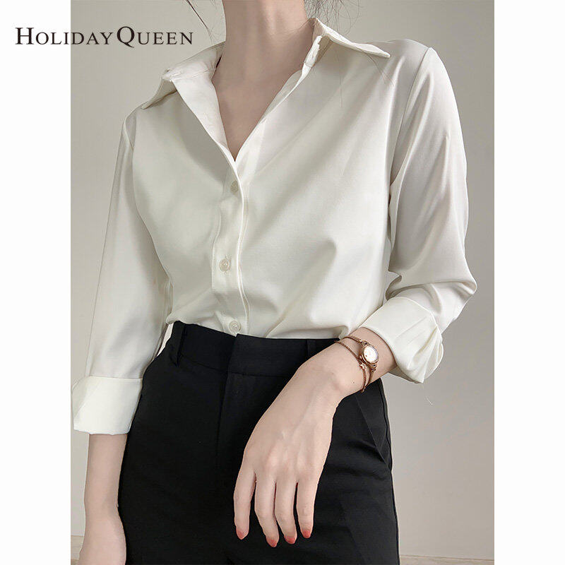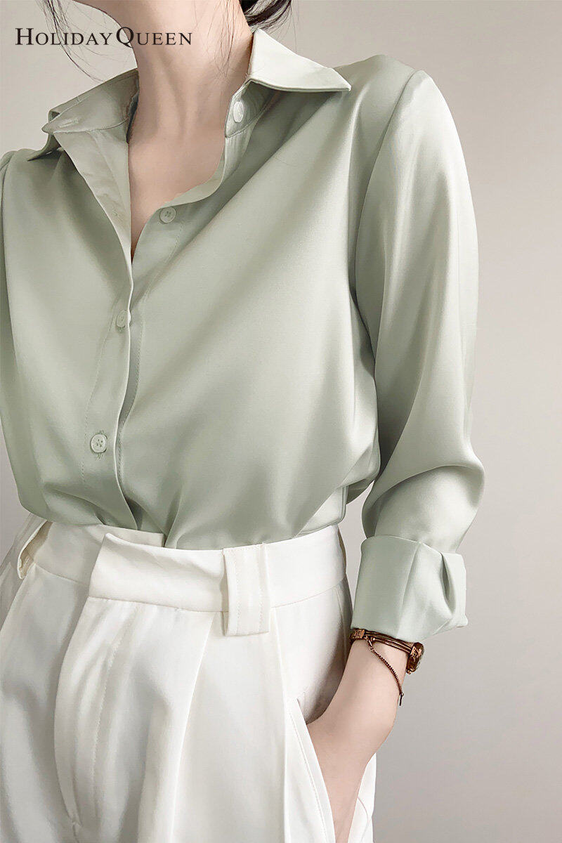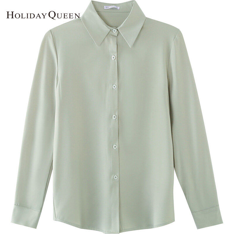 HolidayQueen Simple High-quality Green Satin Shirt Women's Commuter Shirt Design Sensation Small Top Spring Free Shipping HQ1705