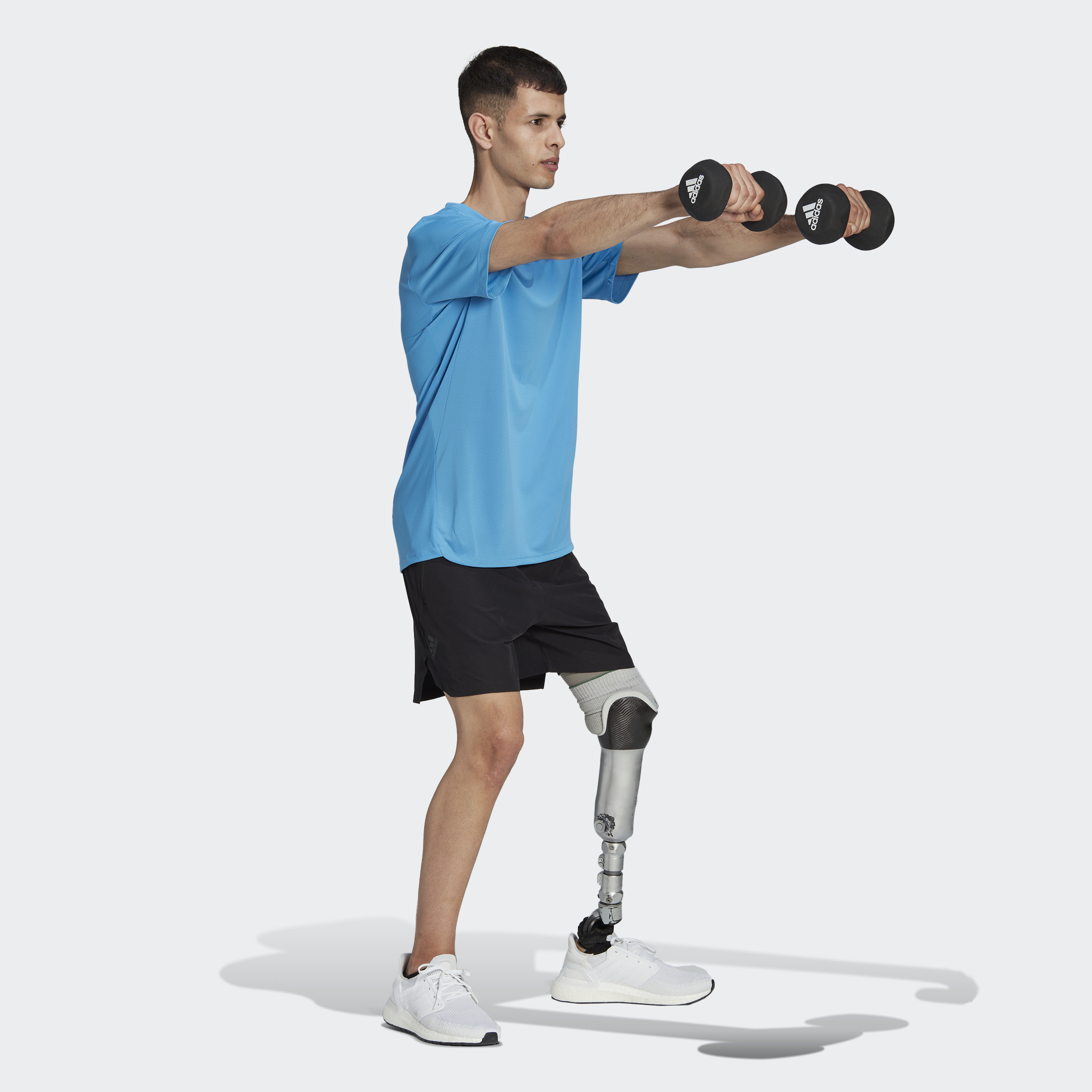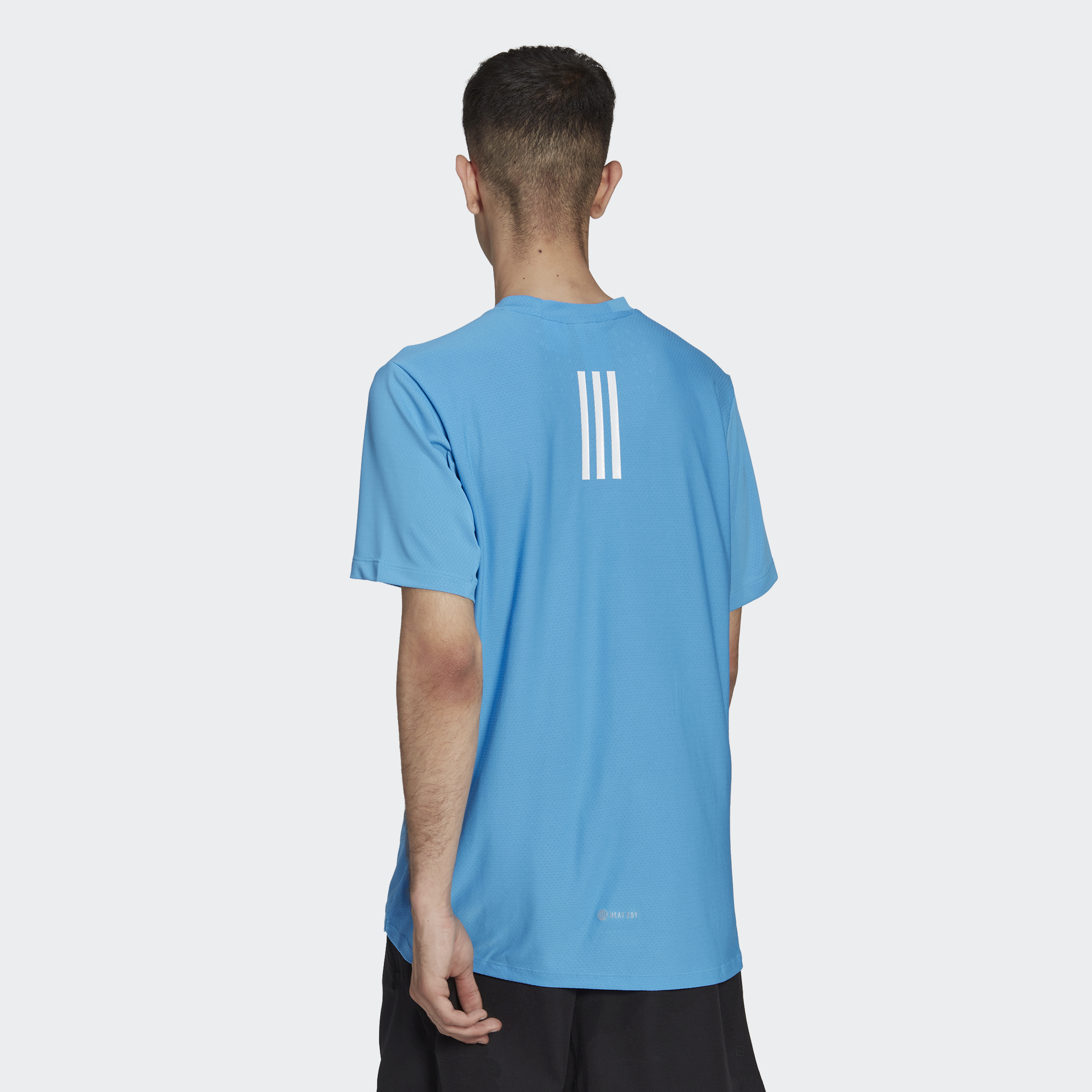 Outdoor bootcamp to metcon, you'll blaze your way through the most intense workouts with this HIIT training t-shirt. Stay dry and cool with HEAT.RDY coupled with chilldots on the inside. Mesh details on the back give you an extra dose of breathability. Knit and jacquard fabric feel silky soft and textured. Made with 100% recycled materials, this product represents just one of our solutions to help end plastic waste.