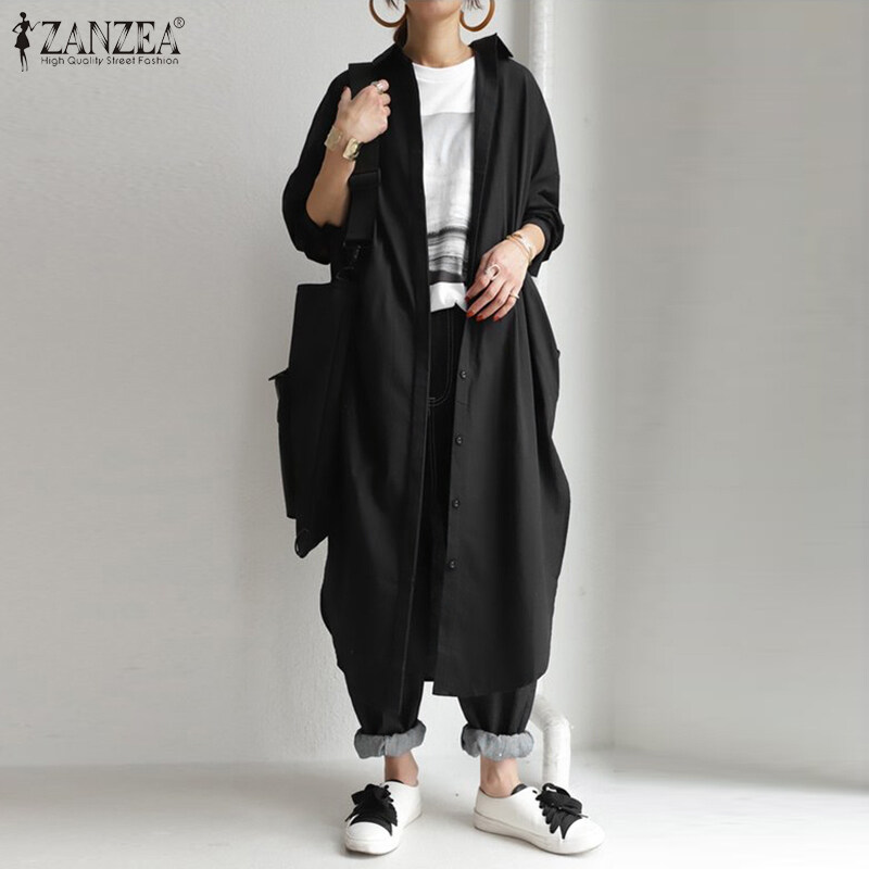 [Clearance Sale]ZANZEA Women Long Sleeve Lapel V Neck High Low Kaftan Maxi Shirt Dress Outwear Cardigan#8 CLE