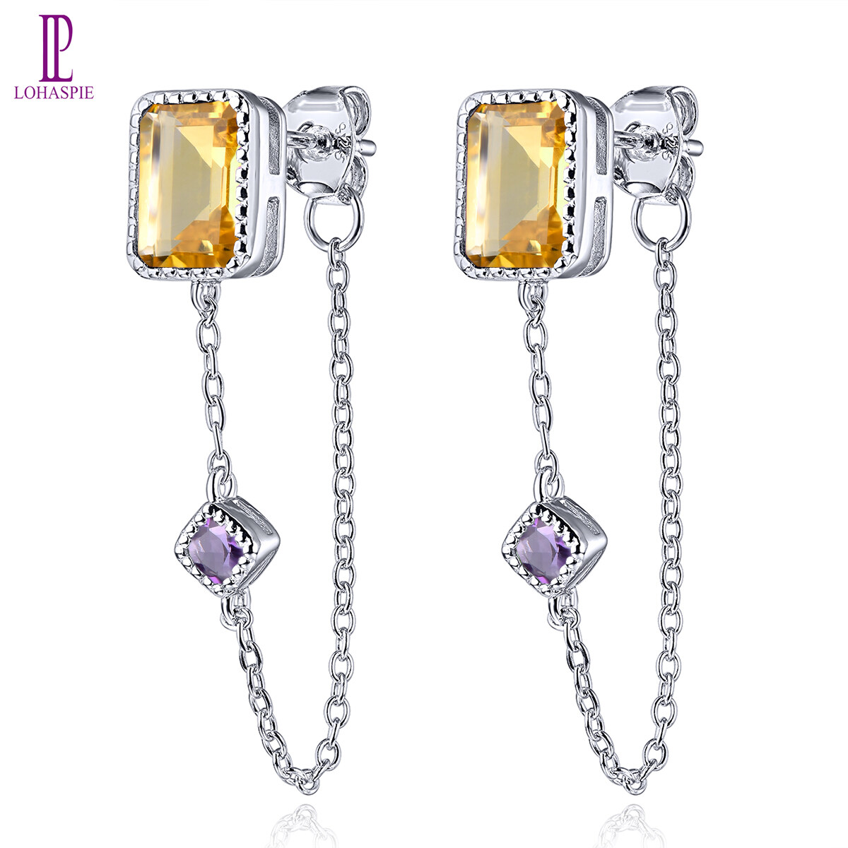 Natural Garnet Drop Earring Ladies Special Jewelry 3.57 Carats Precious Gemstone Amethyst Citrine Natural Quartz Unique Original Design Fine Jewelry Birthday Anniversary Gifts