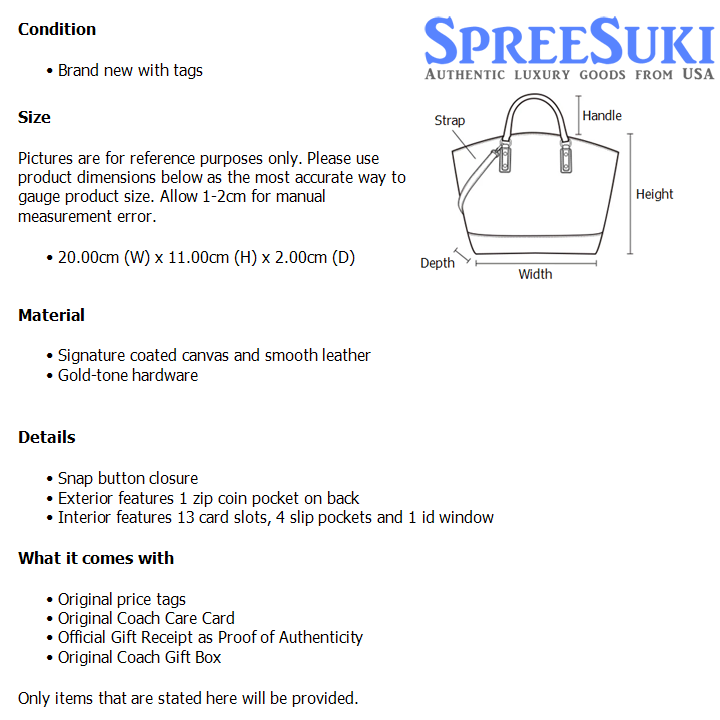 All our products are 100% authentic and purchased from Coach stores in USA. We are a reputable registered business in Singapore and it is illegal to sell counterfeit goods in Singapore. This product also comes with a gift receipt which is printed by the Coach store that we purchased the item from. It states the item that we purchased and the Coach store that it was purchased from, proving the authenticity of the item. Buy with confidence.