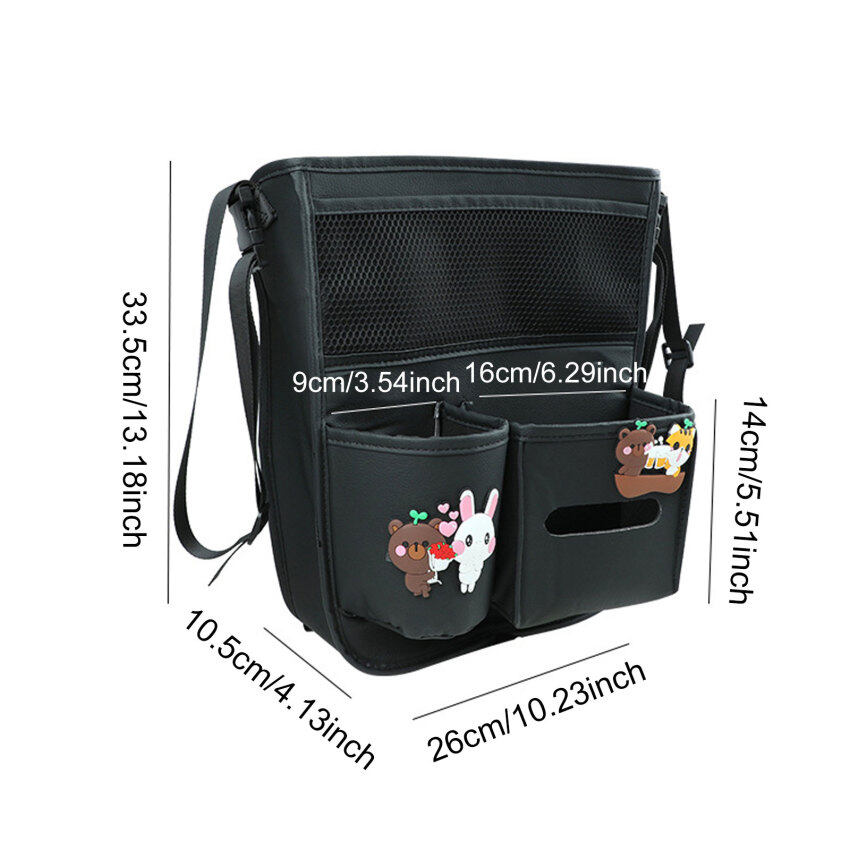 【Strong and Durable】Adopted high-quality leather, strong and sturdy. There are 2 touch fastener at the bottom to fix the storage bag, two adjustable ropes and on the top. Can be adjusted to a suitable size according to the distances between the two front seats.