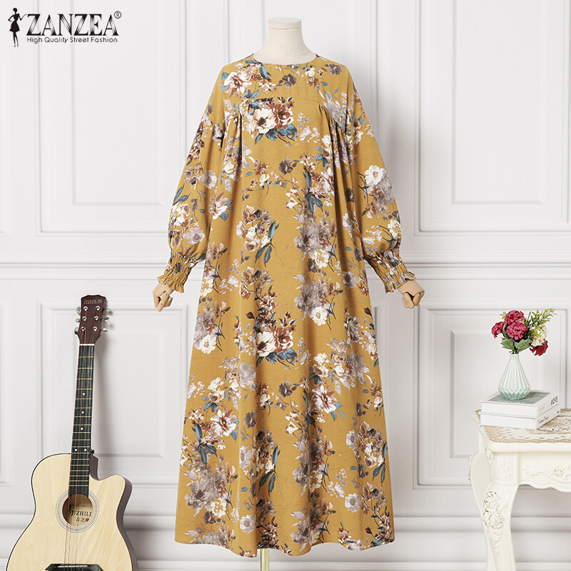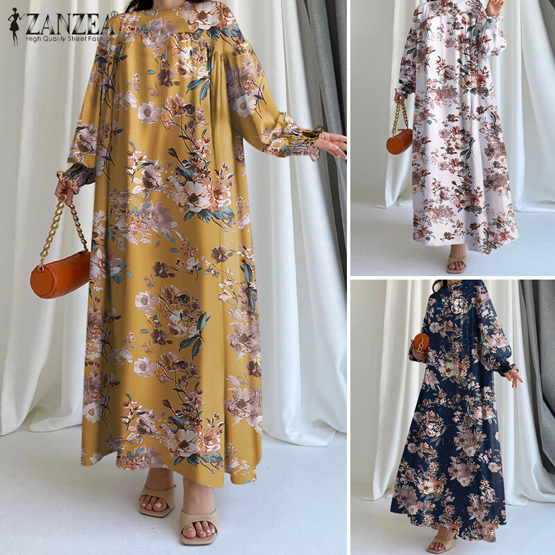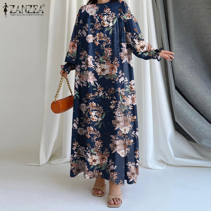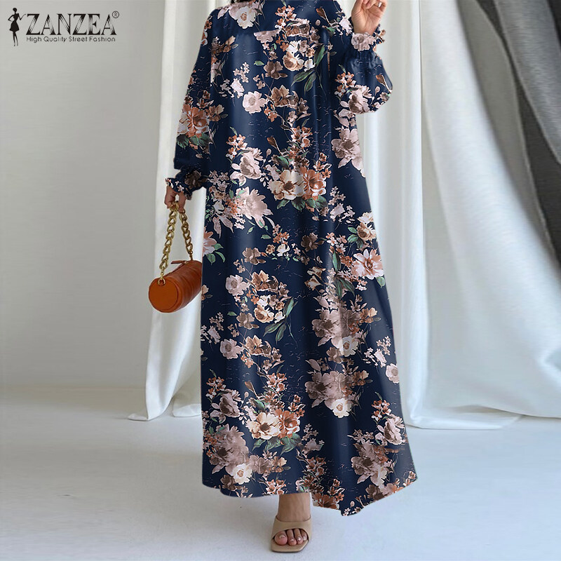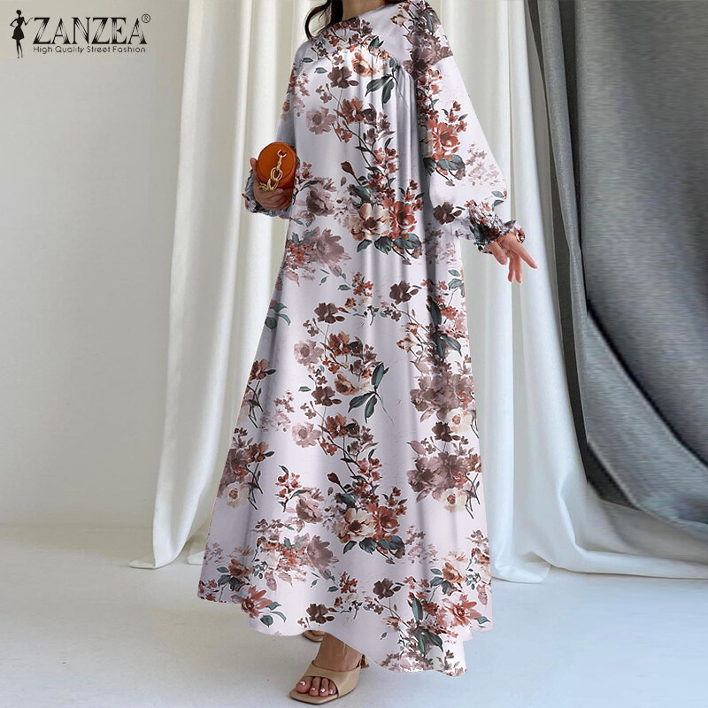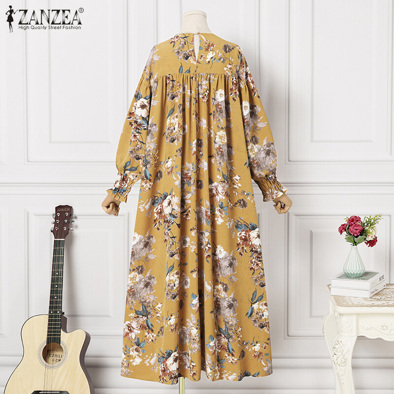 ZANZEA Women Bohemian Floral Printed A-Line Sundress Holiday Beach Long Sleeve Maxi Dress #15
