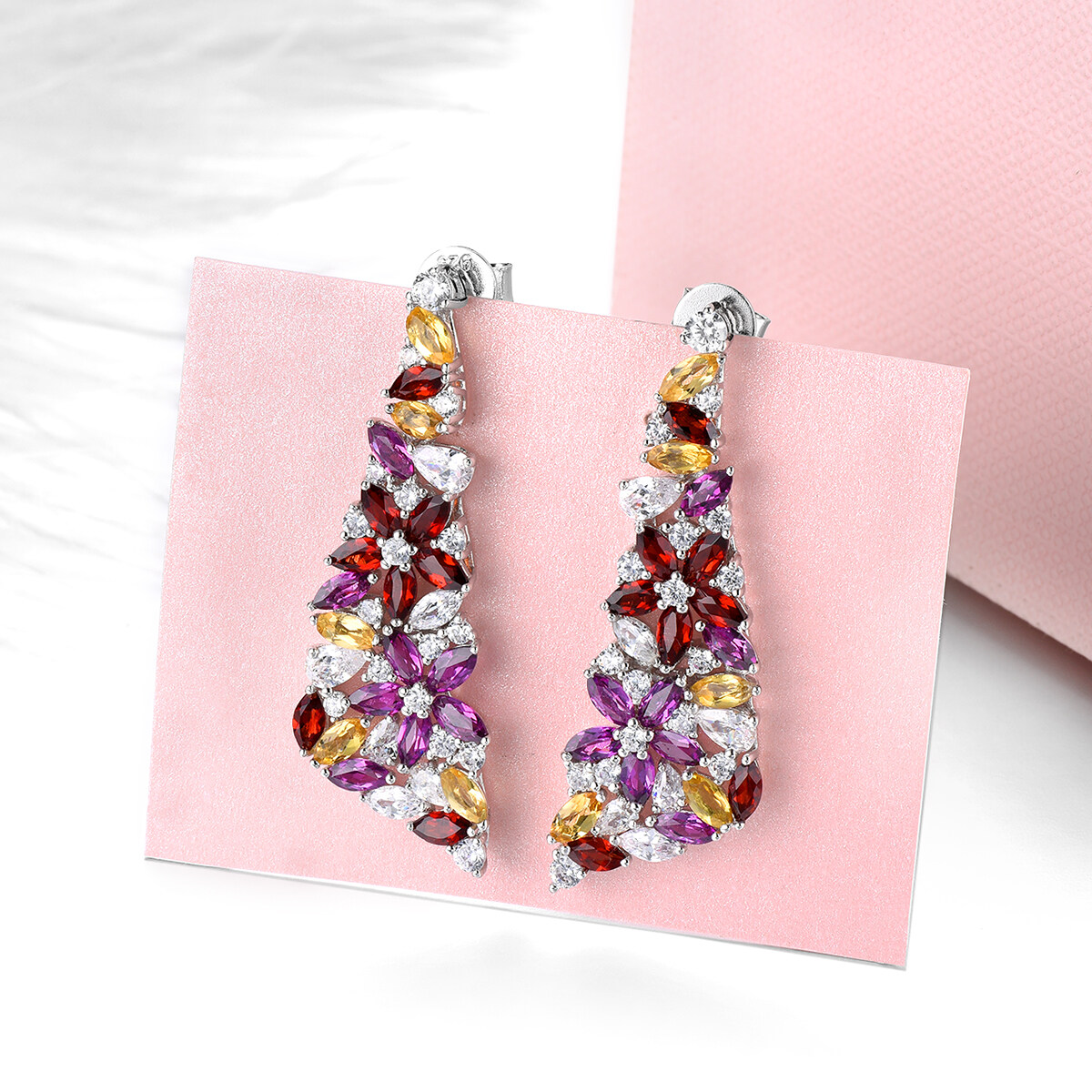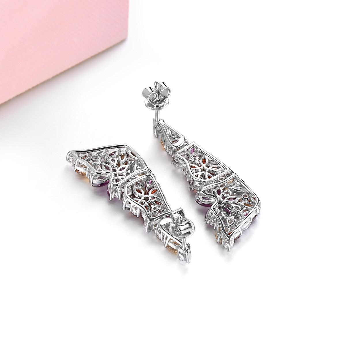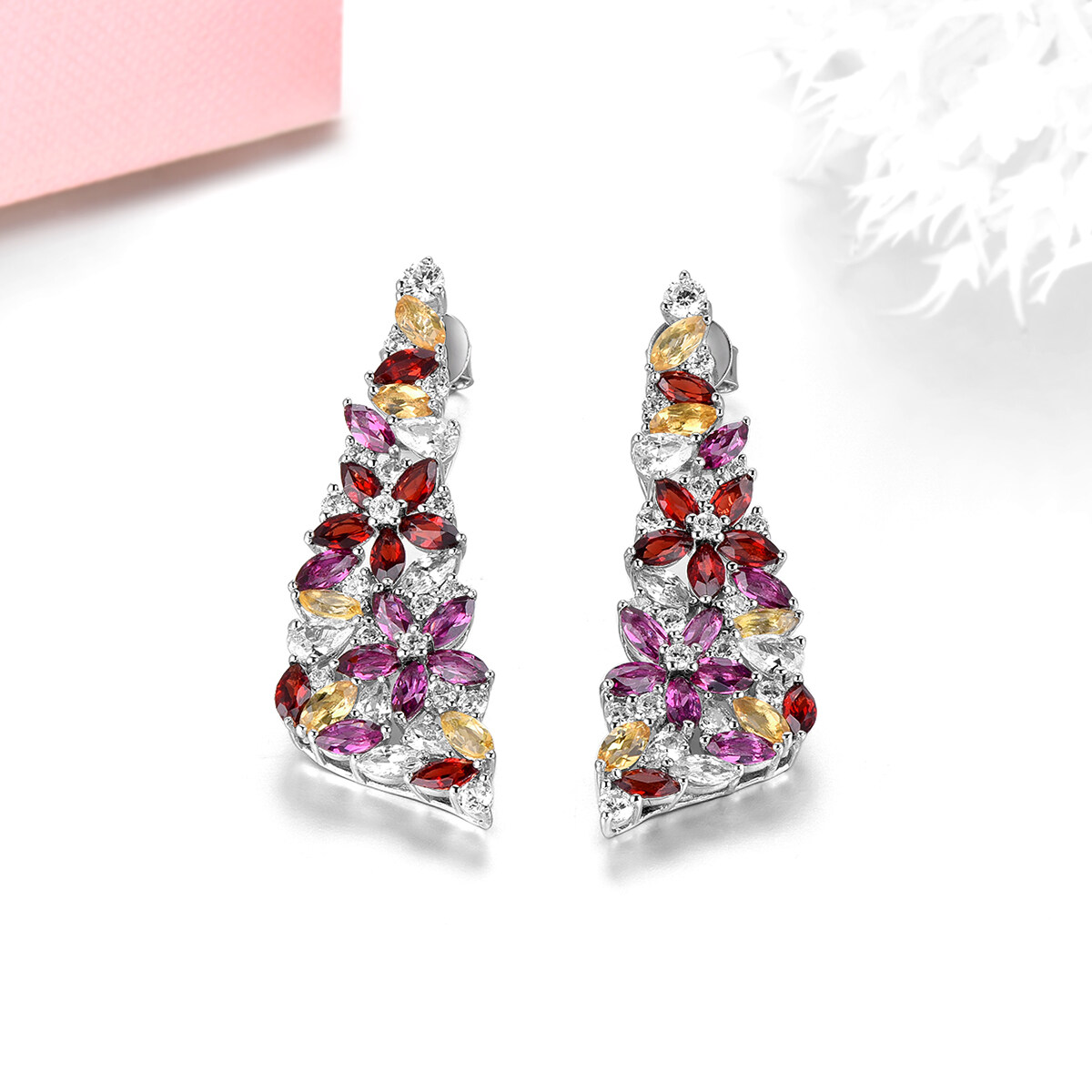 Lohaspie Jewelry Real 6.2 Carats Earring Silver 925 Original Sale Natural Rhodolite Garnet Citrine Stud Earring Citrine Stone Original Earrings For Women Jewelry