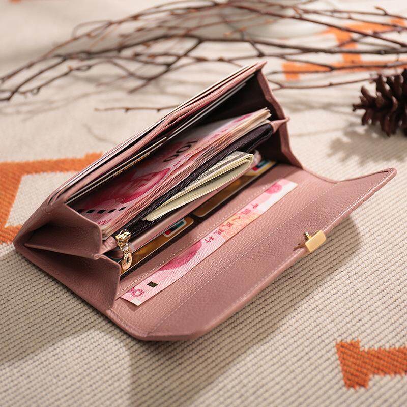 Royal Bagger 100% Genuine Cow Leather Purse Fashion Ladies Wallet Large Capacity Zipper Two Fold Long Clutch Bag Elegant Wallets For Women Girls