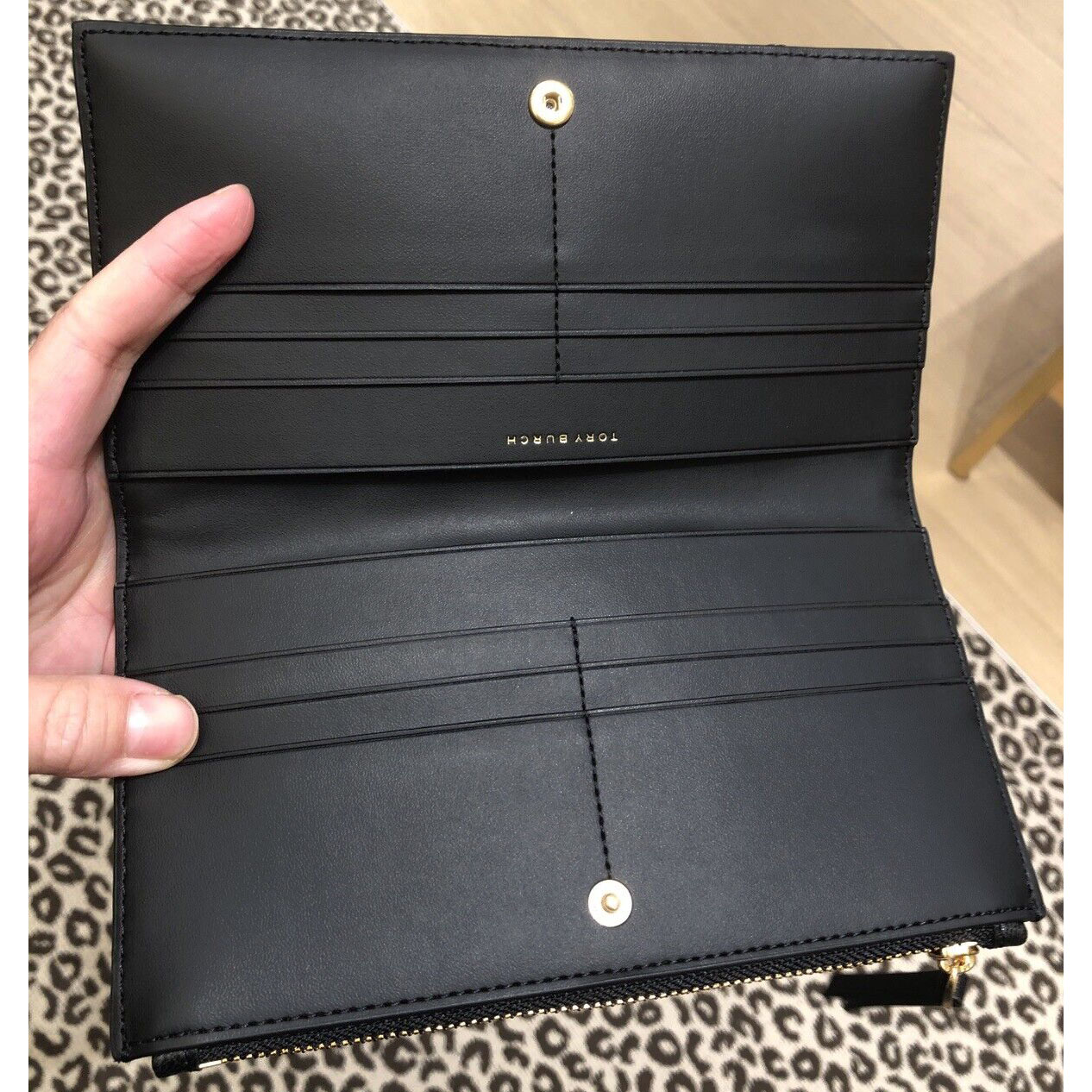 Interior features 12 card slots and 2 slip pockets