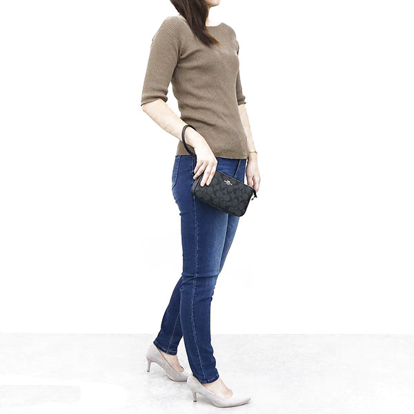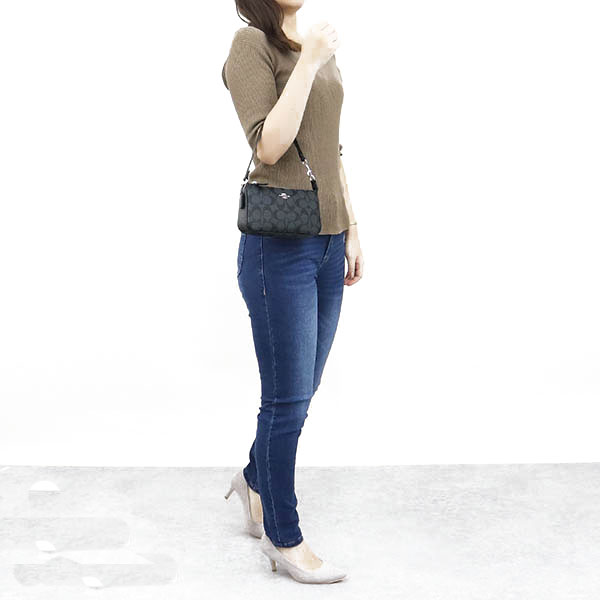 Coach Handbag In Gift Box Wristlet Pouch Shoulder Bag Nolita 19 In Signature Canvas Graphite Black # C3308