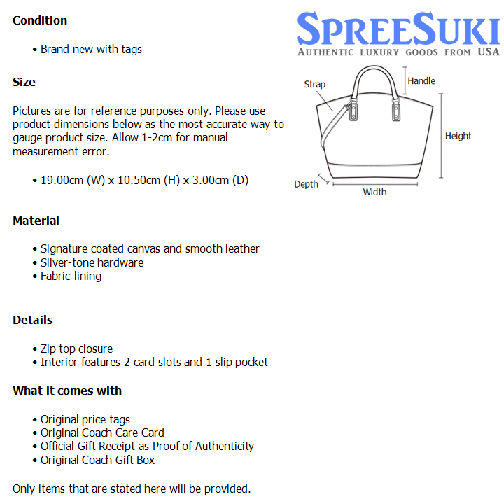 All our products are 100% authentic and purchased from Coach stores in USA. We are a reputable registered business in Singapore and it is illegal to sell counterfeit goods in Singapore. This product also comes with a gift receipt which is printed by the Coach store that we purchased the item from. It states the item that we purchased and the Coach store that it was purchased from, proving the authenticity of the item. Buy with confidence.