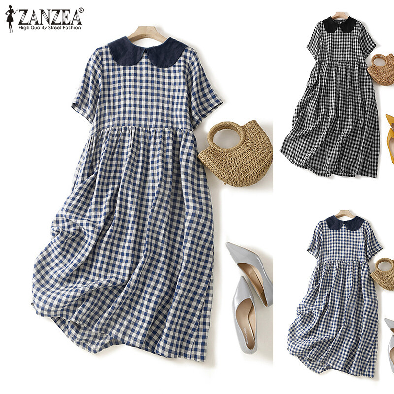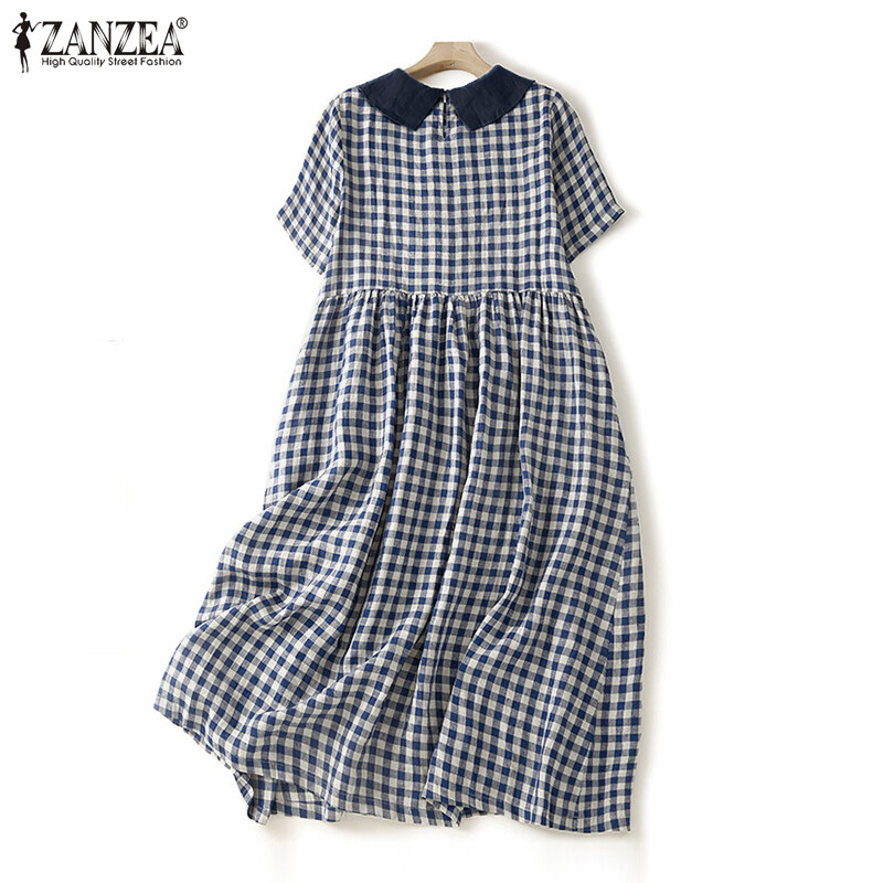 ZANZEA Women's Vintage Commute Lattice Printed Maxi Dresses Fashion Lapel Pleated Sundress #2