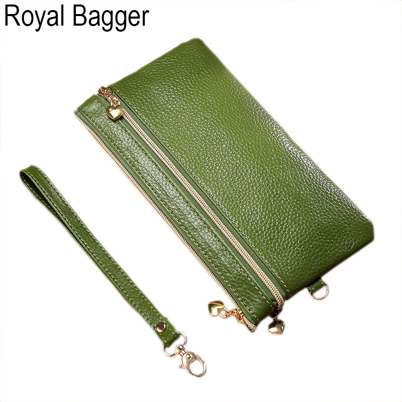 Royal Bagger Long Wallet Purse For Women Girls Genuine Cow Leather Fashion Clutch Shoulder Bags Handbag Multifunction