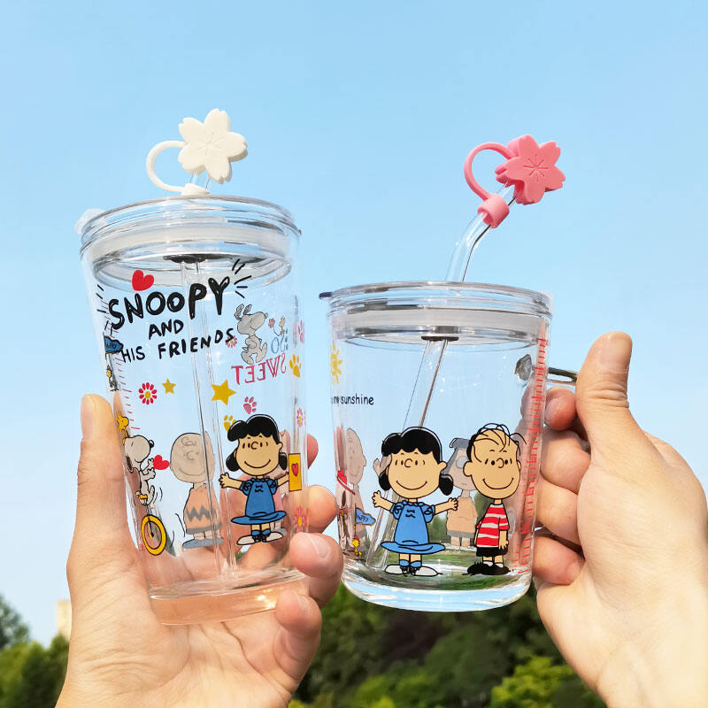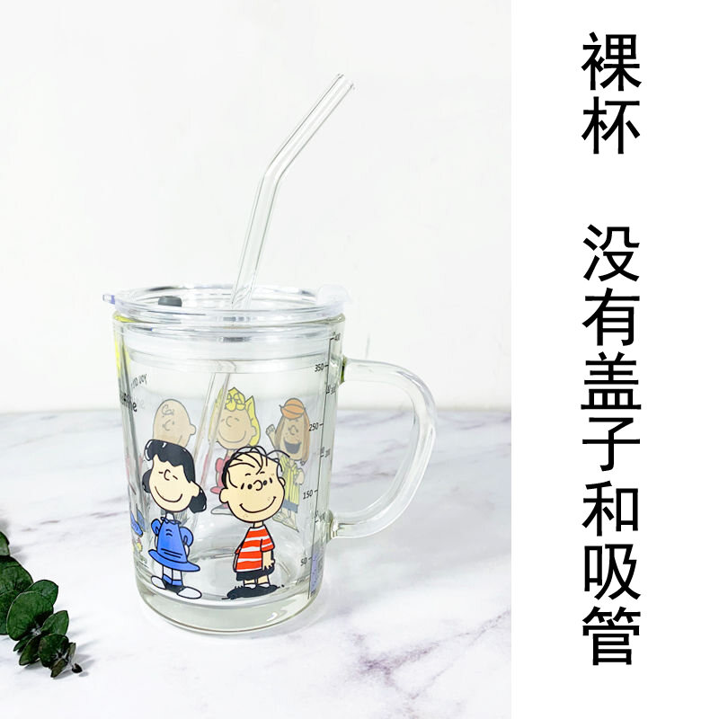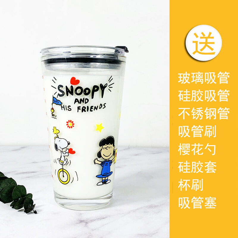 Good Product Straw Cup Adult Portable Children's Milk Cup Ins Internet Celebrity Girl Cute Water Cup Snoopy Scale Glass