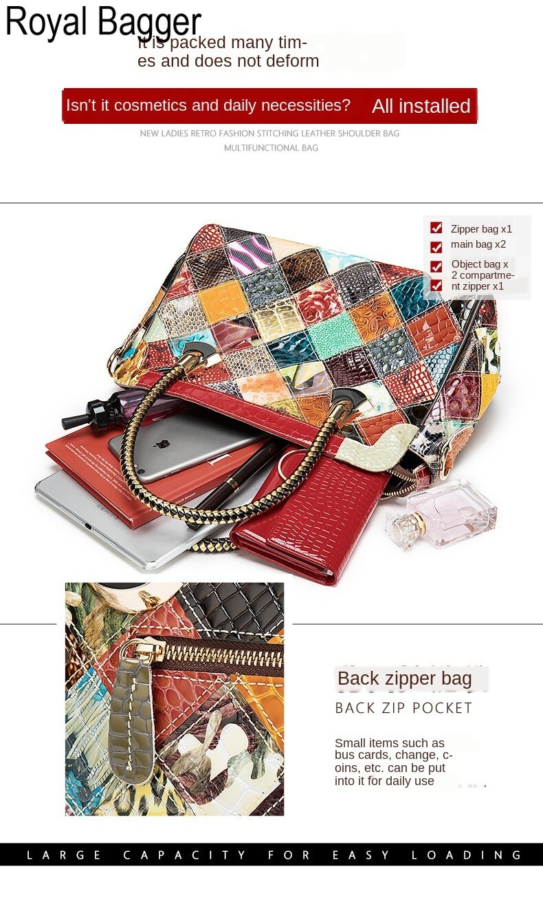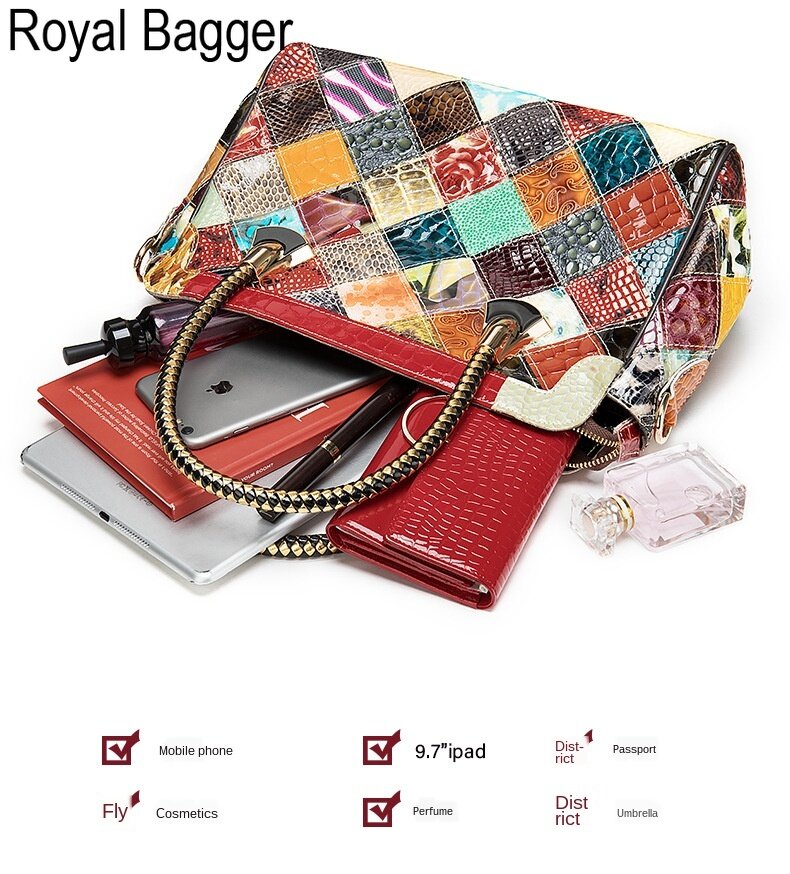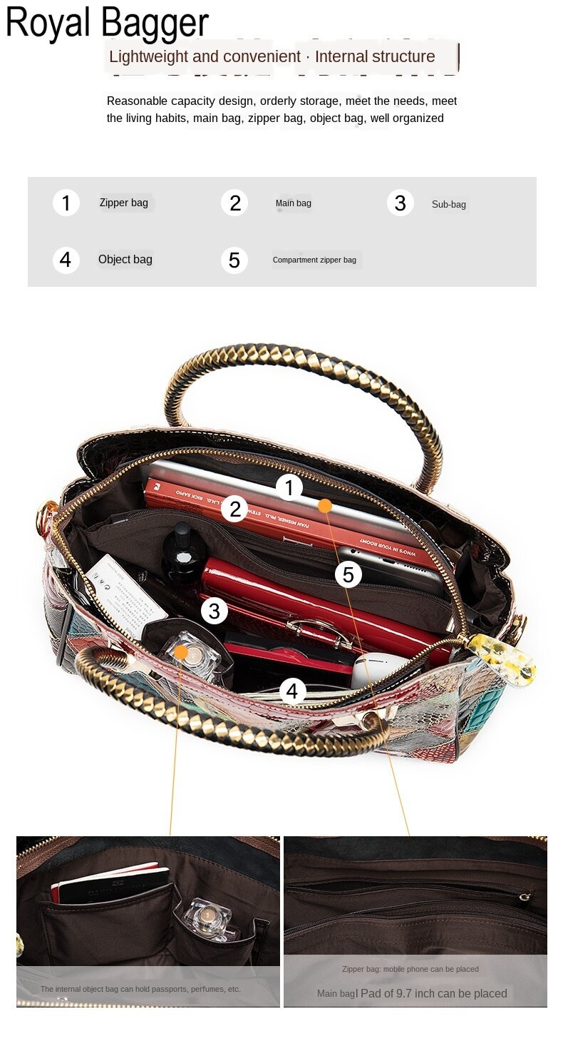 Royal Bagger New Fashion Retro Style For Women Bag Genuine Cow Leather Multifunction Top Handbag Elegant Ladies Large Capacity Europe and America Cool Sling shoulder Bag