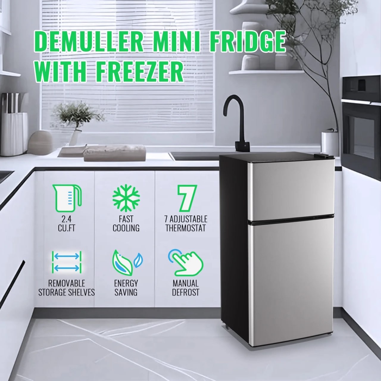 Penyimpanan maksimal untuk ukuran mini: konfigurasi pintu ganda (freezer di atas, kulkas di bawah)