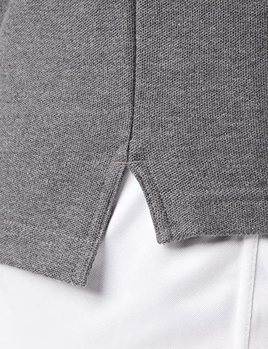 Collar with hidden buttons gives polo shirt an elegant look