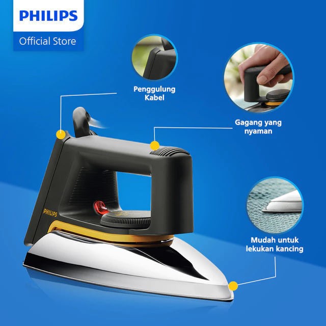 Tapak anti lengket & ujung runcing memudahkan penyetrikaan tanpa merusak kain